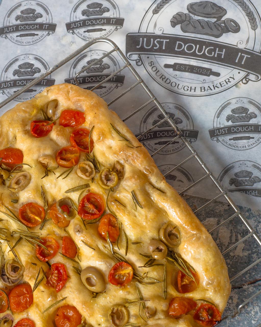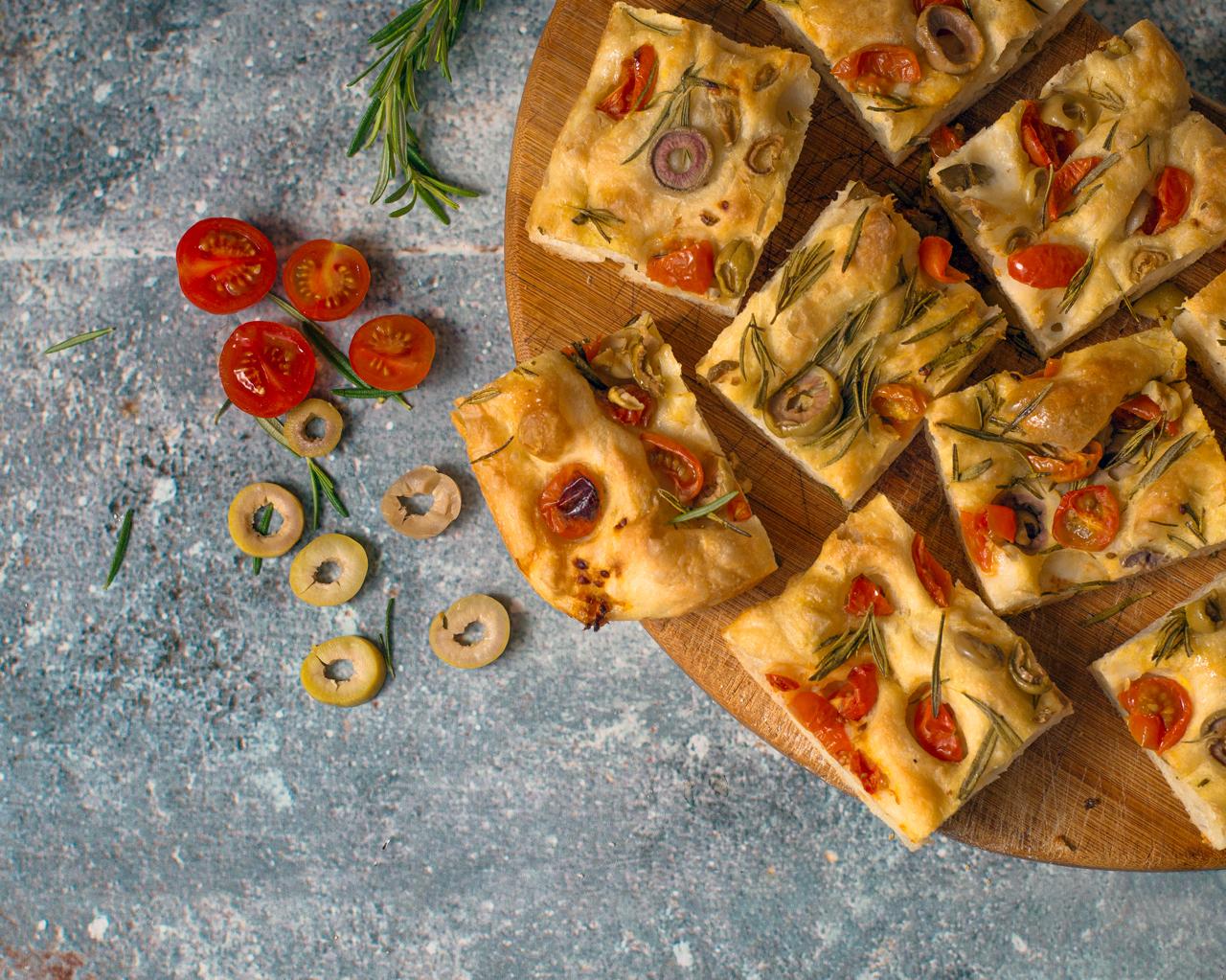 Authentic Italian taste! Soft and airy Focaccia, richly flavored with cherry tomatos, olive oil and aromatic herbs. Perfect for dipping or as a luxurious side bread.