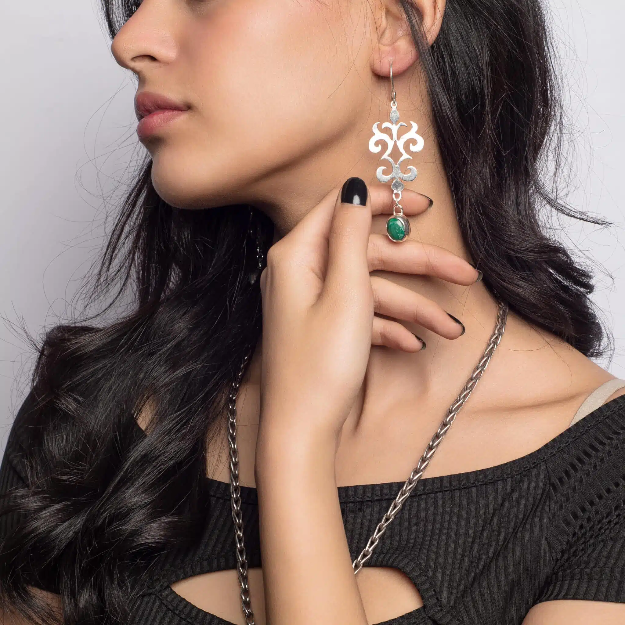 Be the first to review “Folkloric sterling silver earring with malachite”