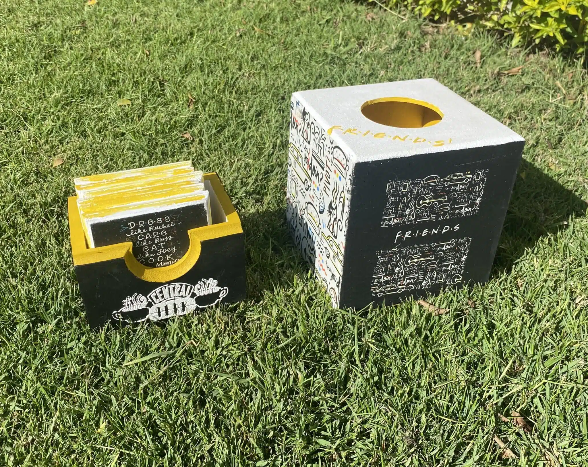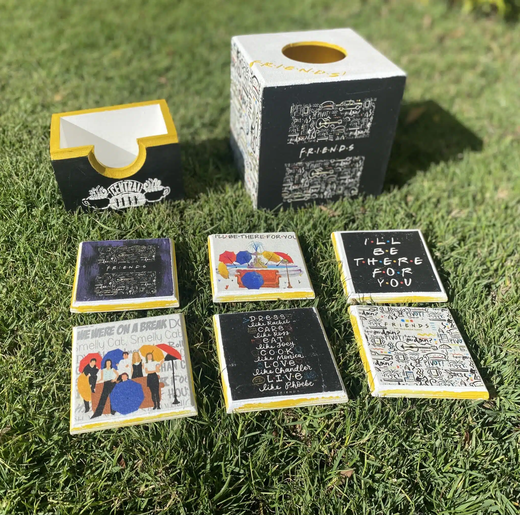 Wooden set of tissue box and coasters F.R.I.E.N.D.S Them in black & white colors