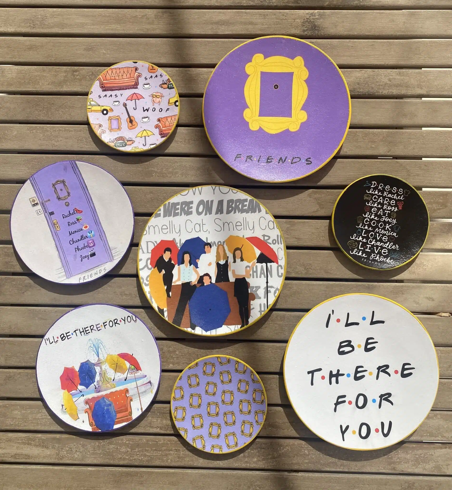 Decoupaged Wall Plates with F.R.I.E.N.D.S Theme