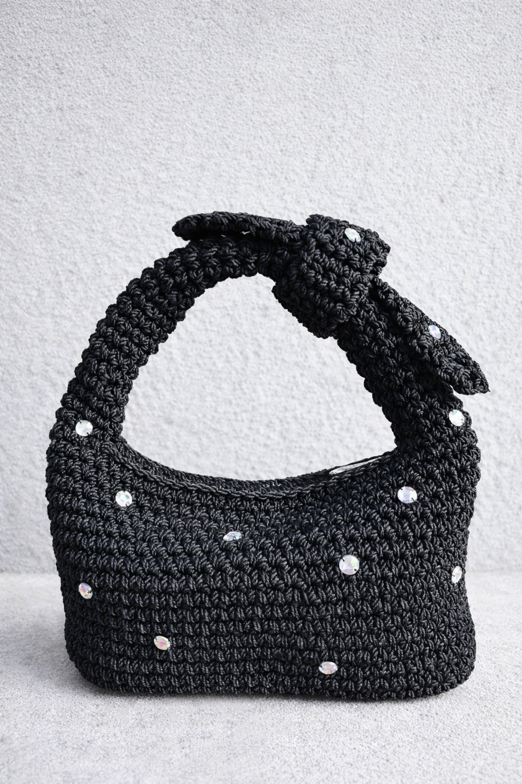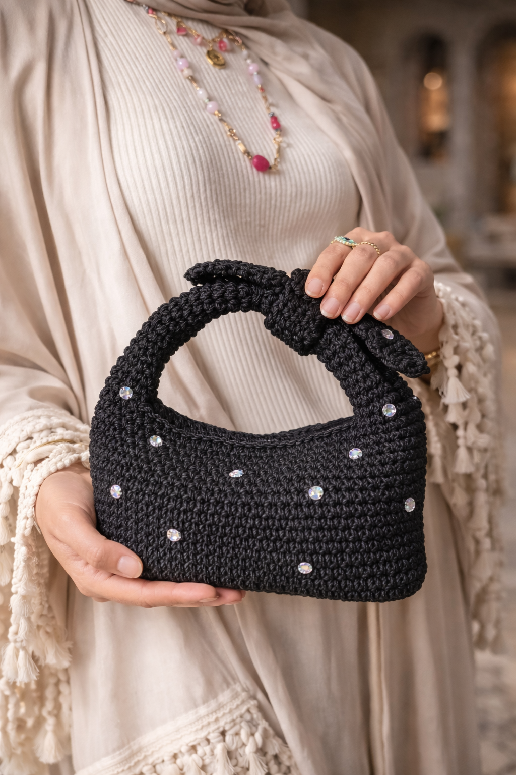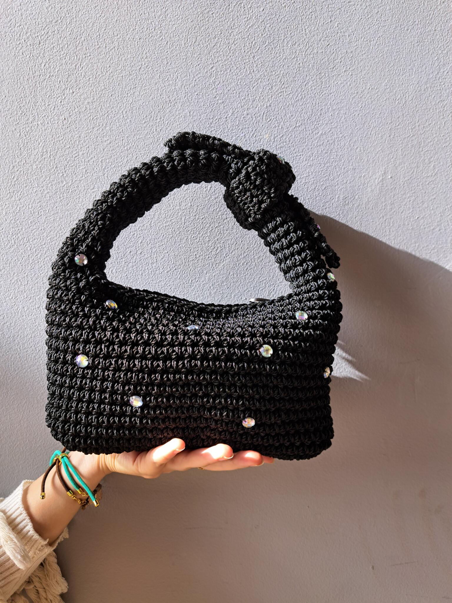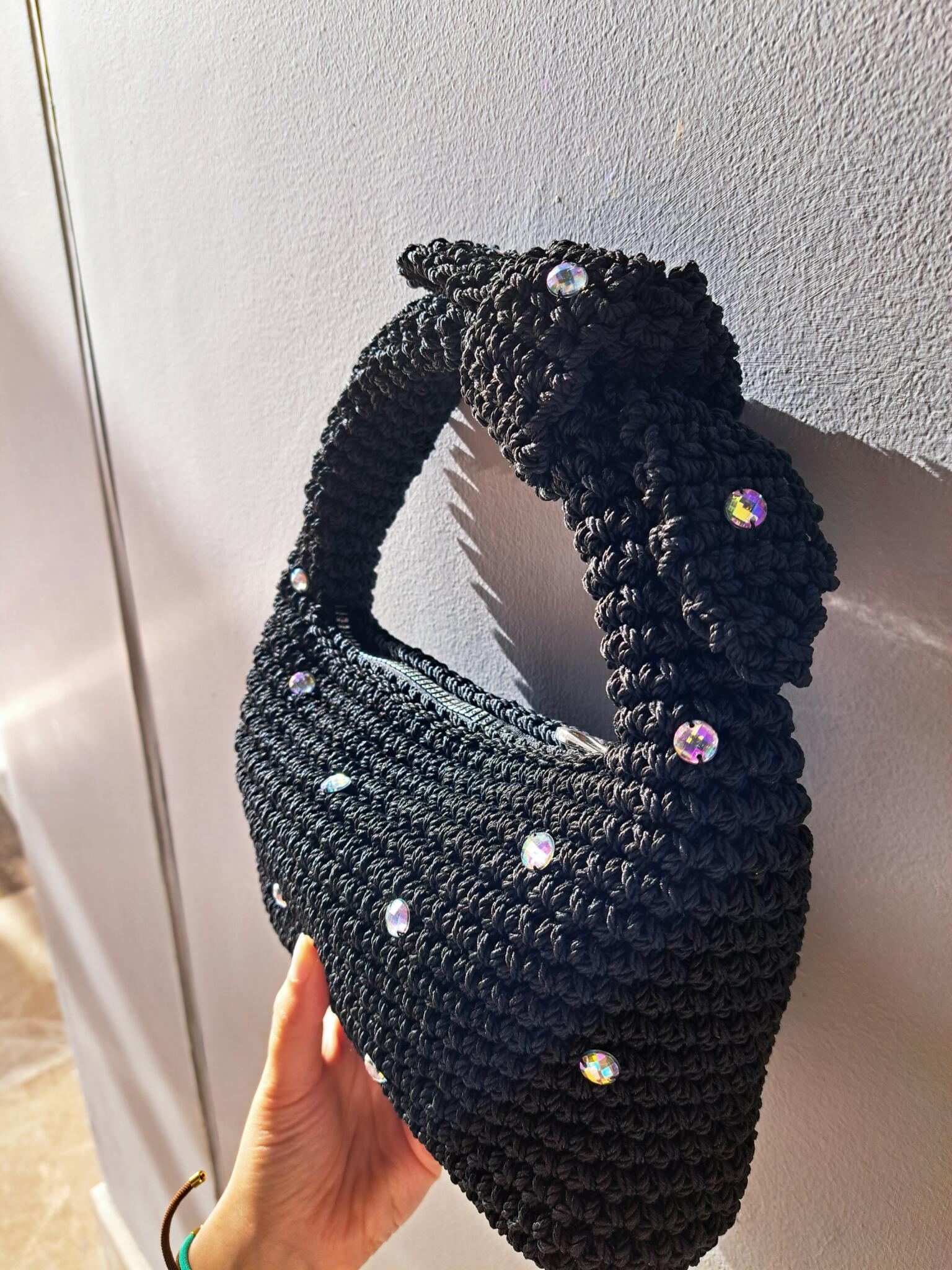 Handmade macrame yarn bag.