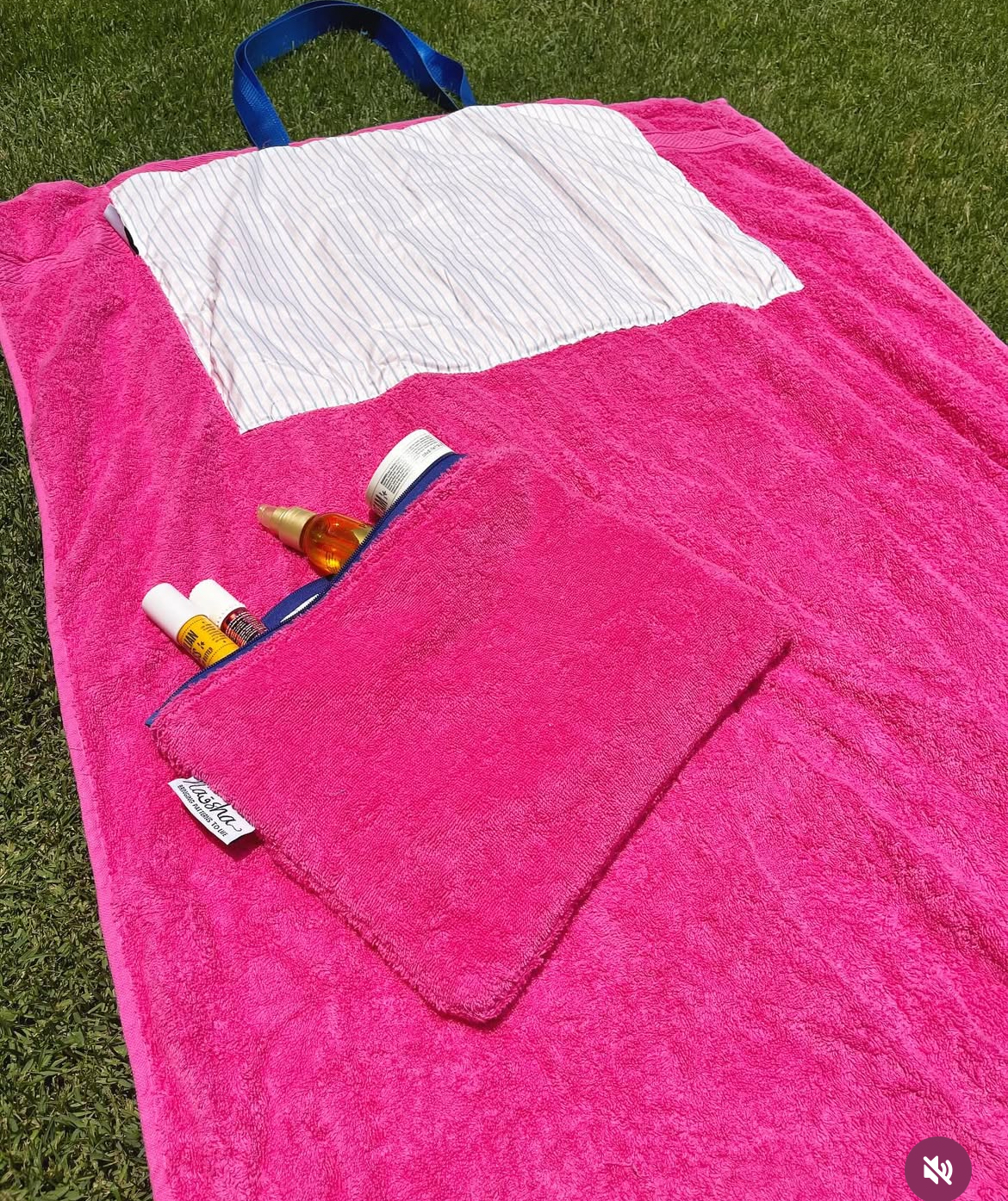 Towel Foldable tote to be carried as a bag, and also when opened can be used as a towel, in fuchsia color