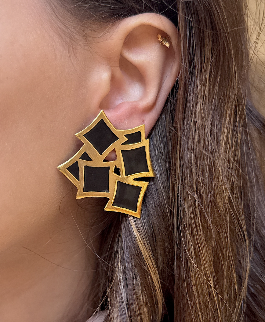 gold black copper platted earrings.