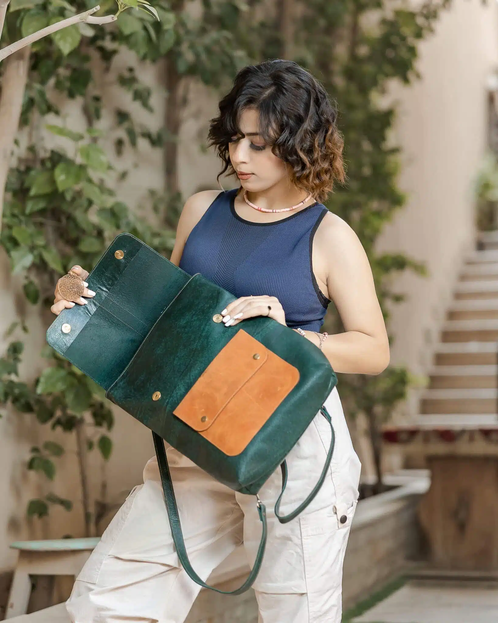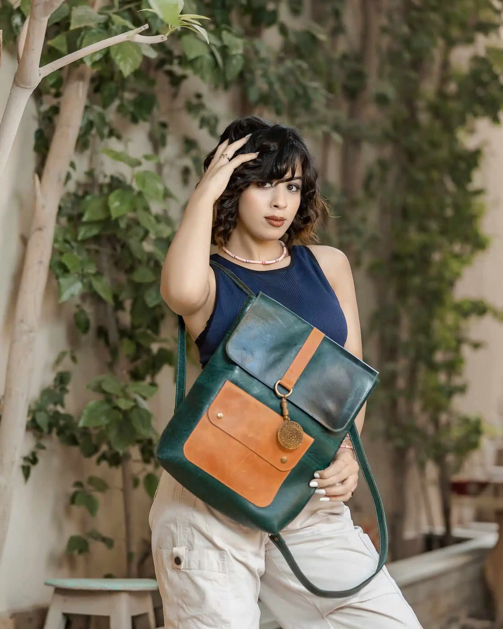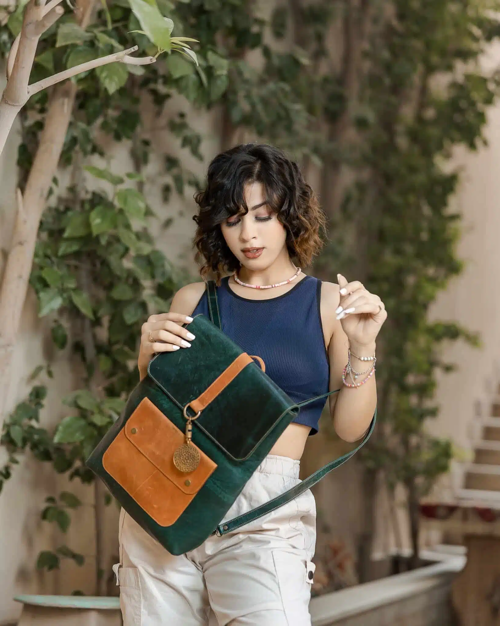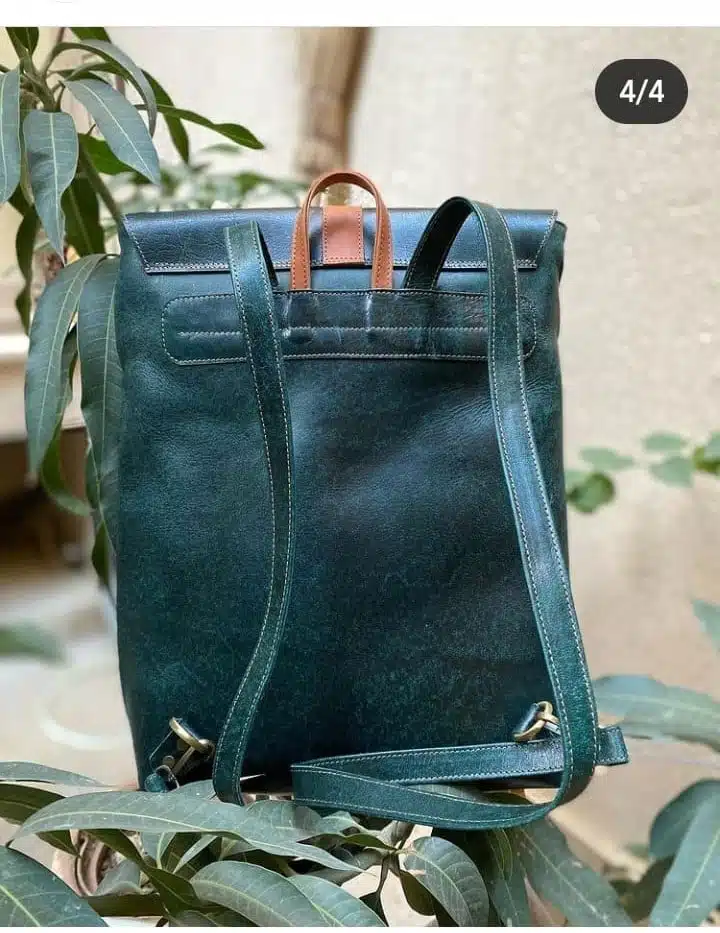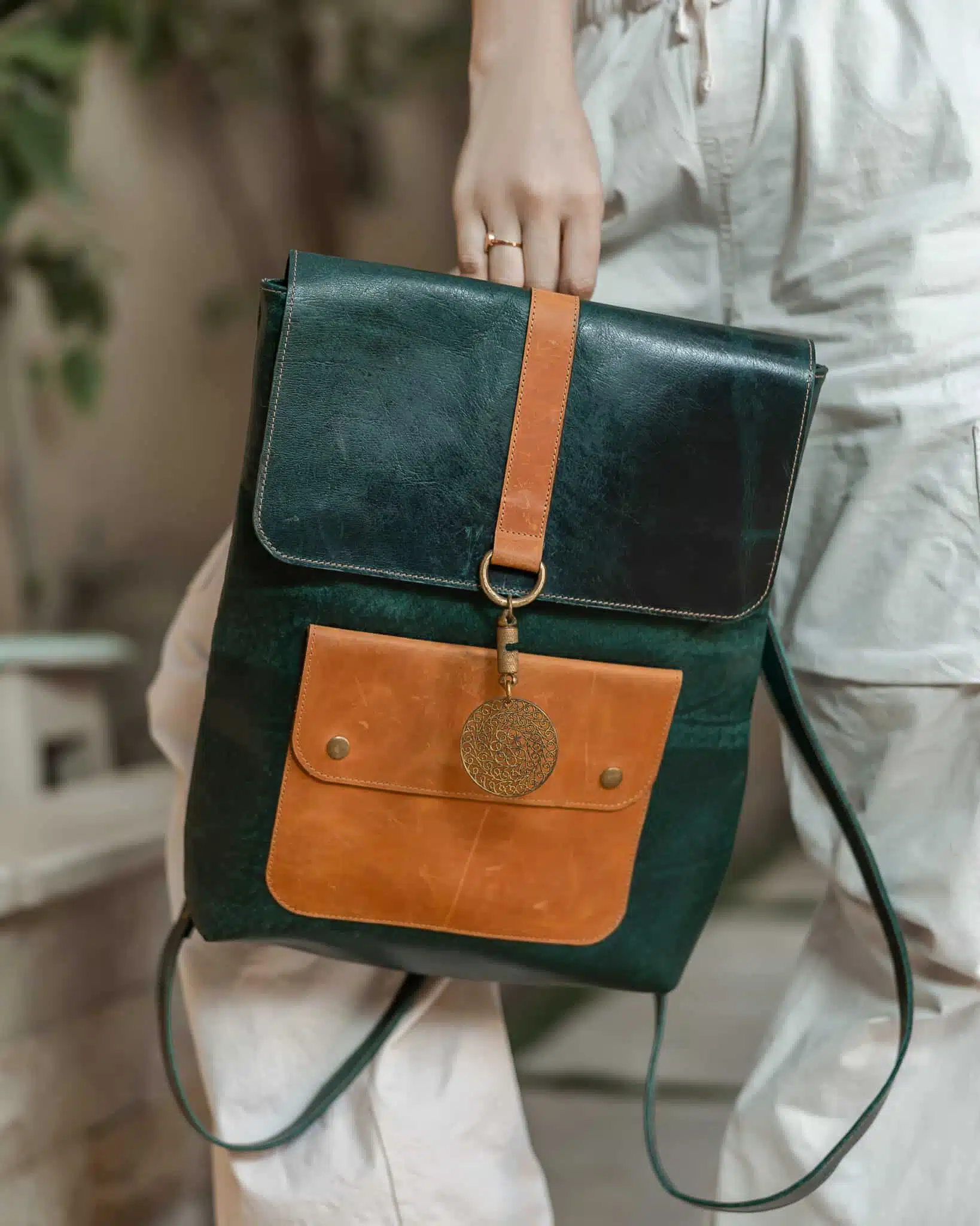 Green large leather backpack for women. It is great solution for everyday use. Can serve as a gift to your family members or just a friend.