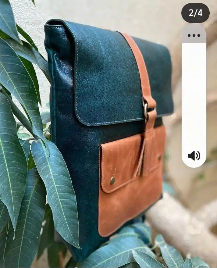 1 large compartment. 100% Genuine Leather Bag new Medium Size. Pull up two color leather bag with canvas lining inside.