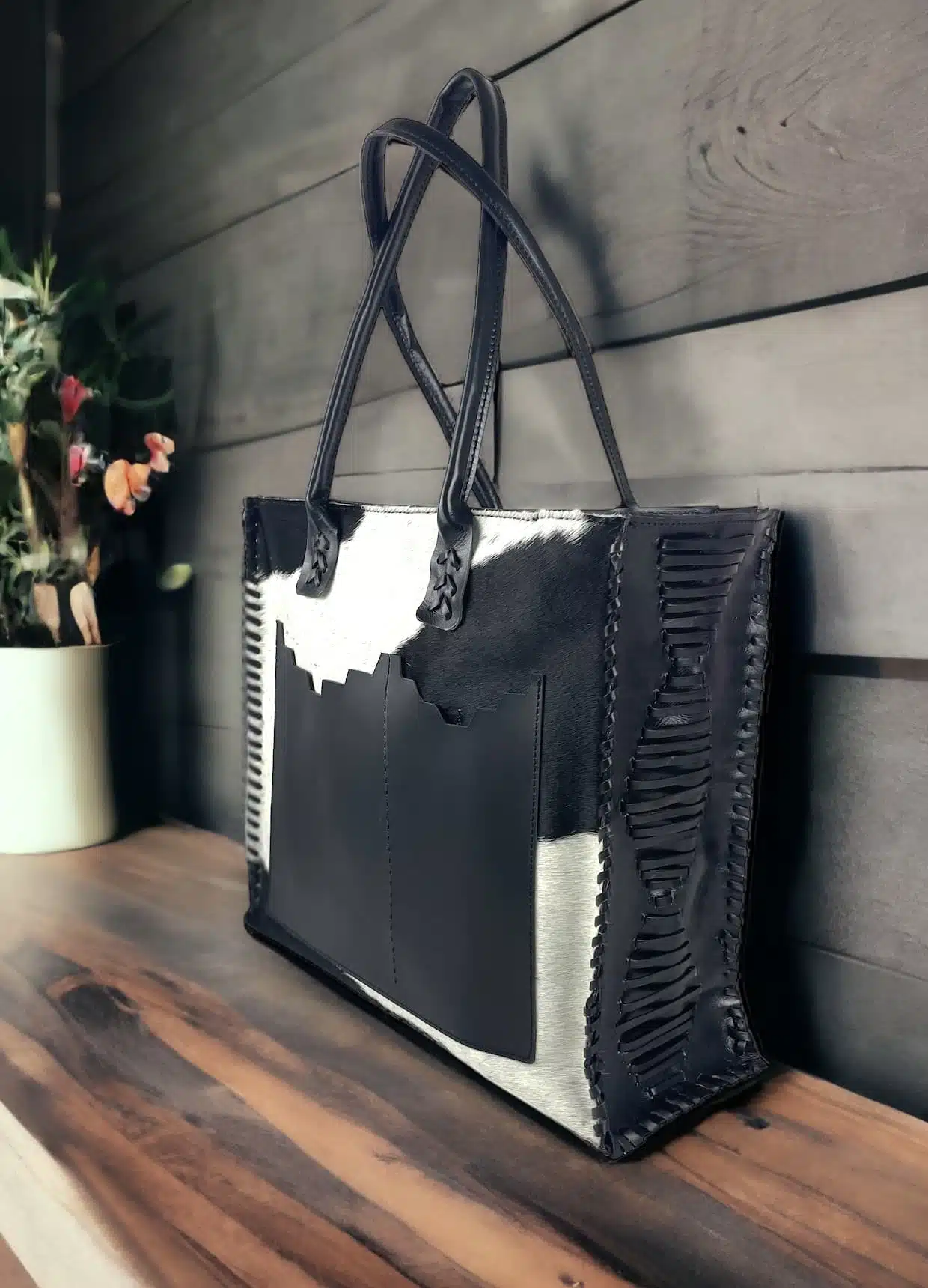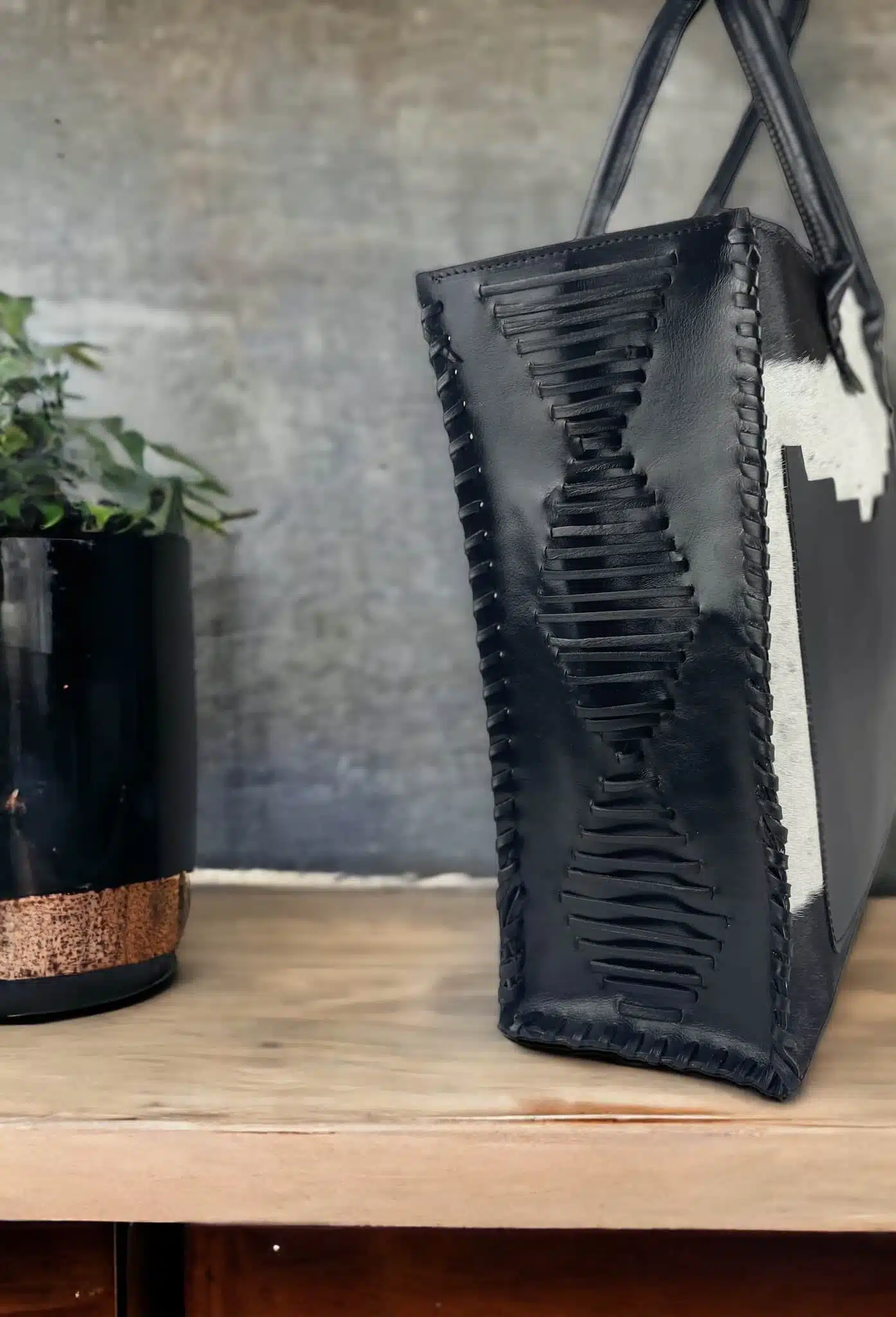 Handmade genuine leather hairy bag