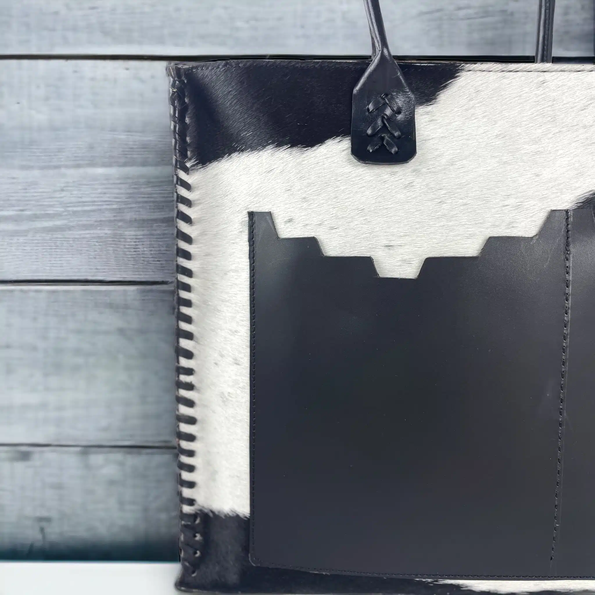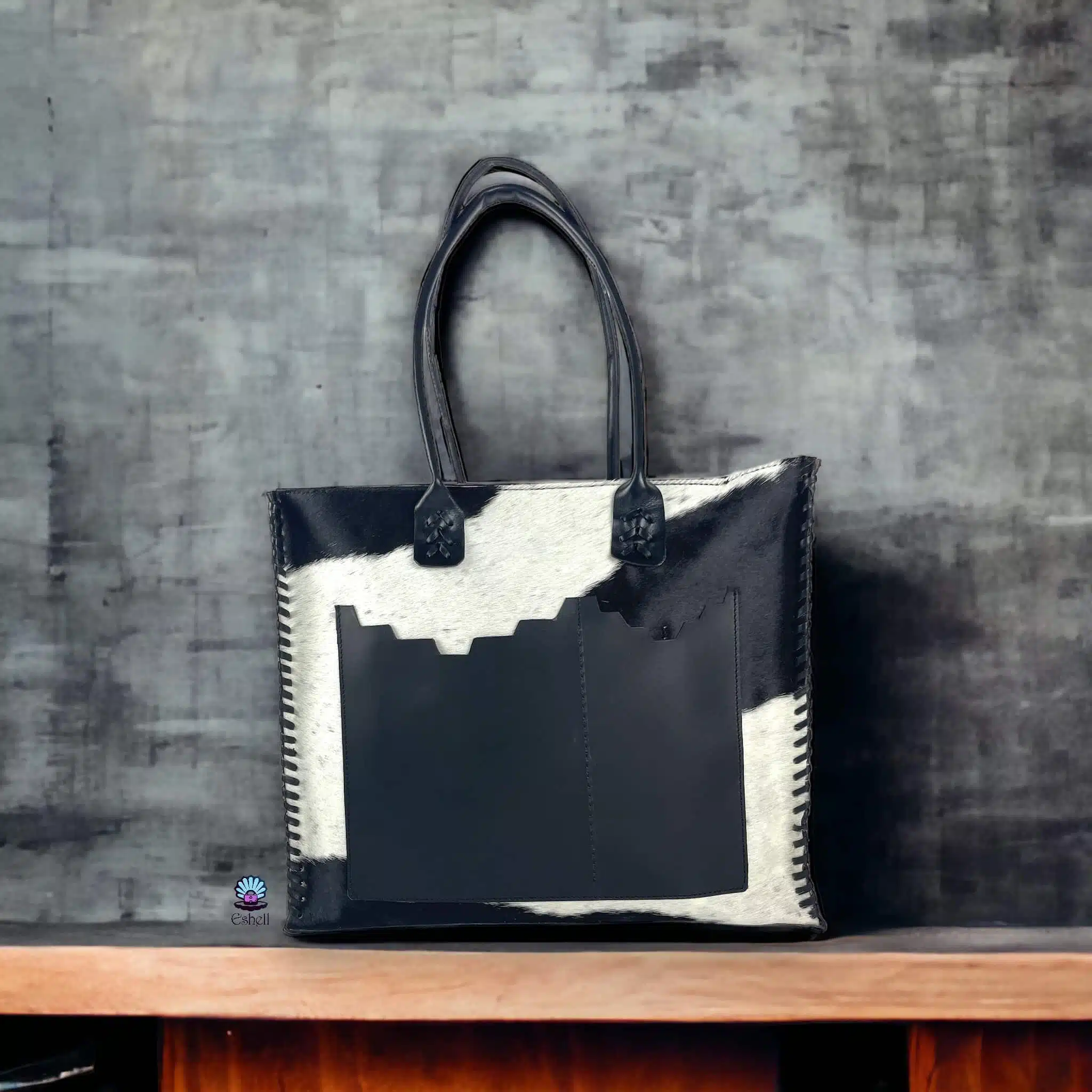 Handmade genuine hairy leather mega bag with large pocket inside and key chain