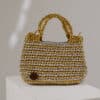 Handcrafted raffia crochet bag in silver and gold, lined with soft satin inside.