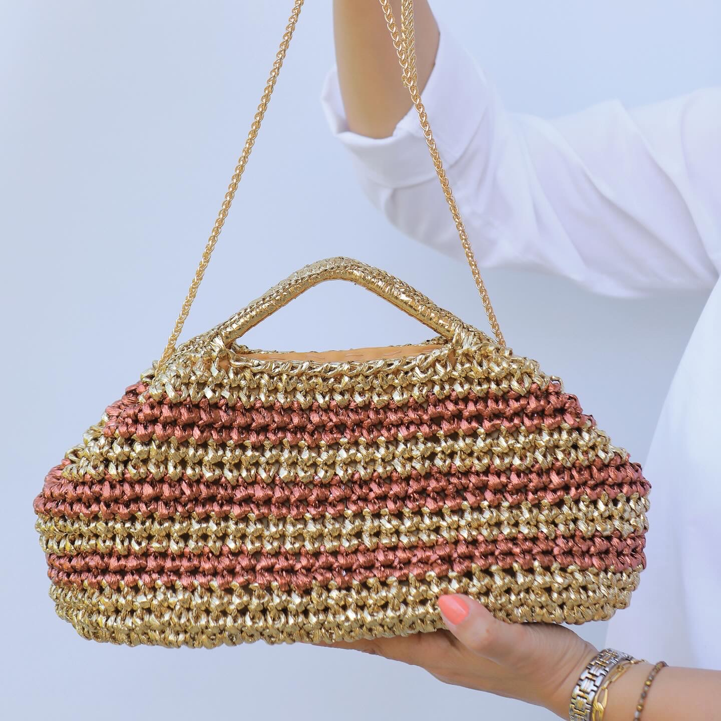 Be the first to review “Gold & bronze stripped metallic clutch”