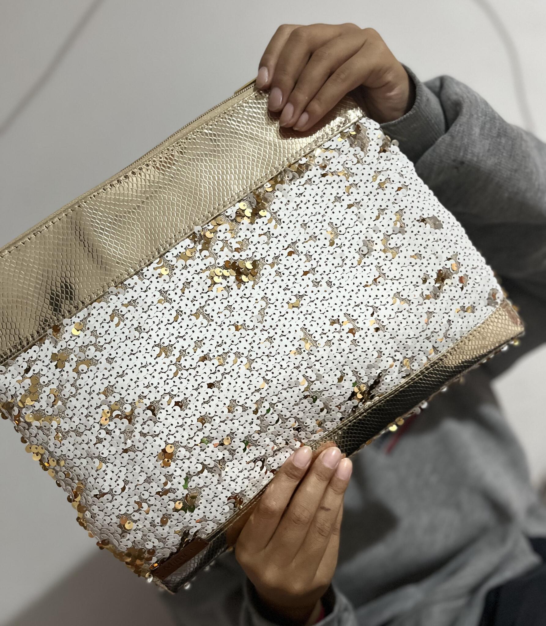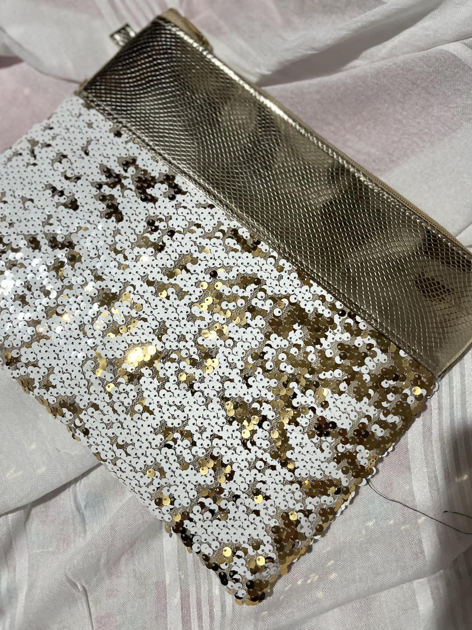 - Gold leather clutch + payt