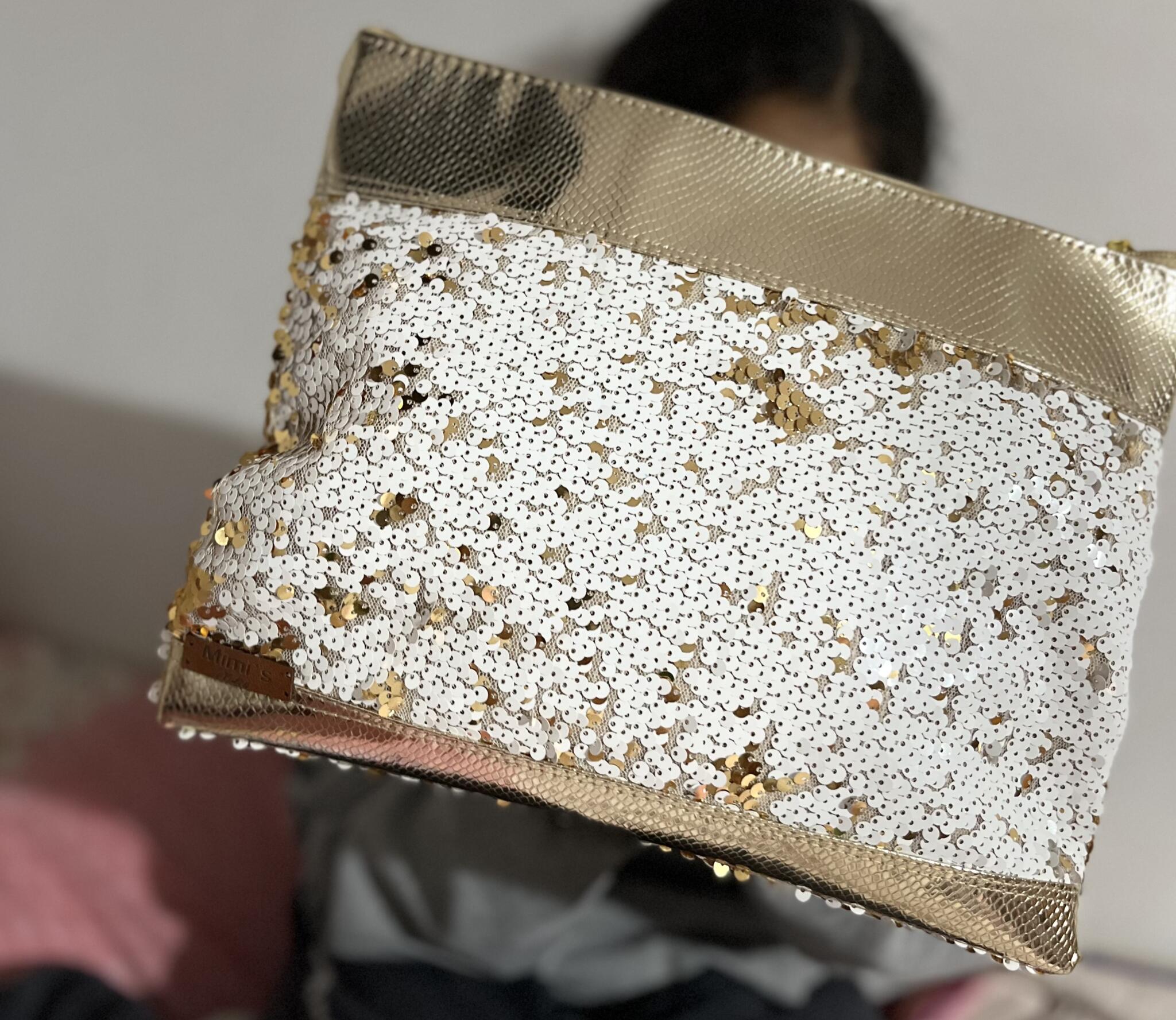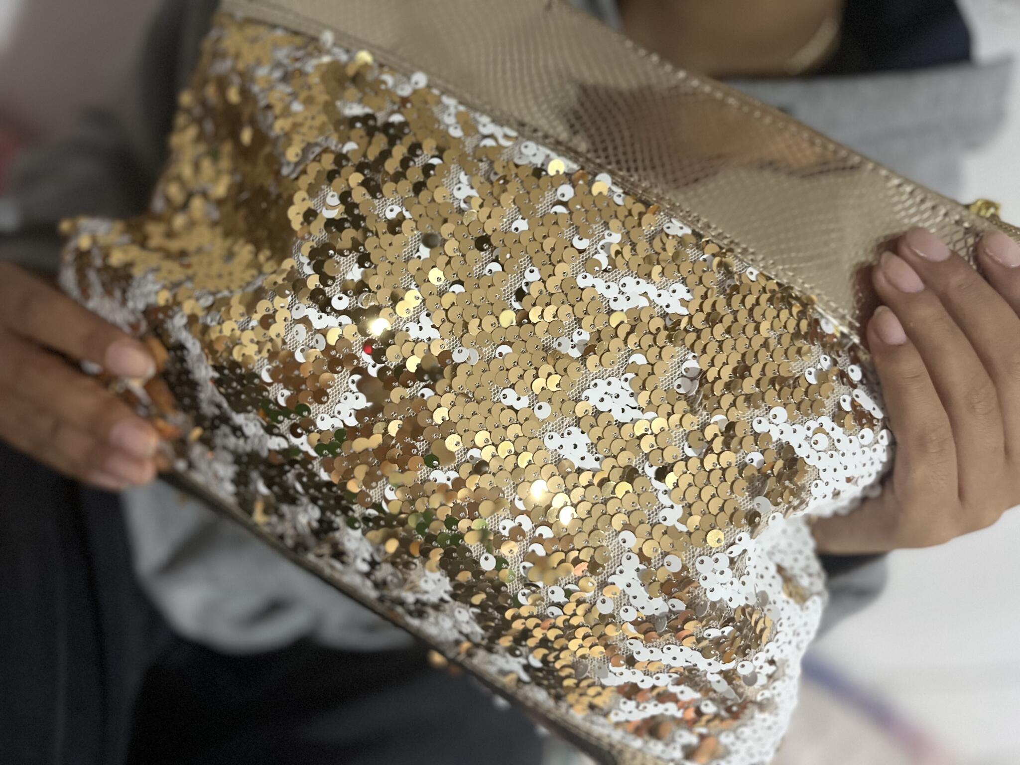Golden leather clutch