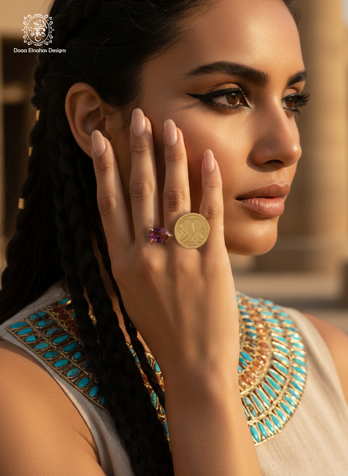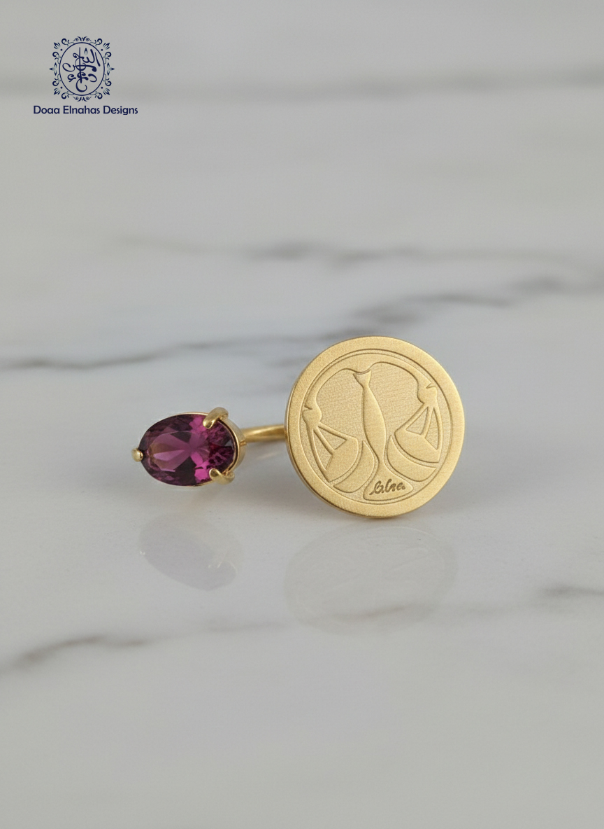 Gold plated brass double ended ring Libra and zircon (size 17)