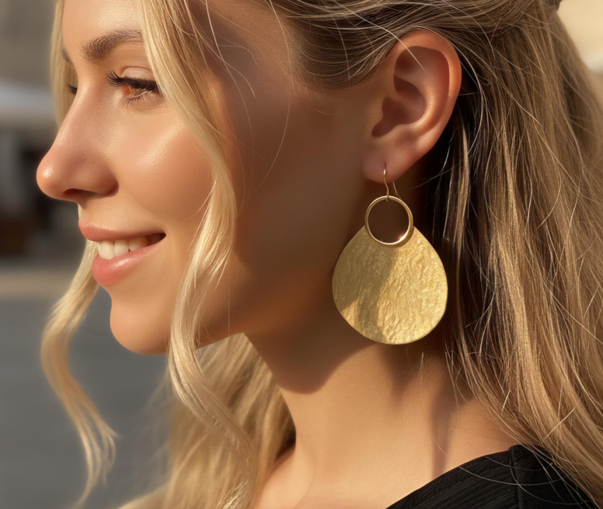 Gold plated Lunar crescent earing 5.00 CM ( diameter )