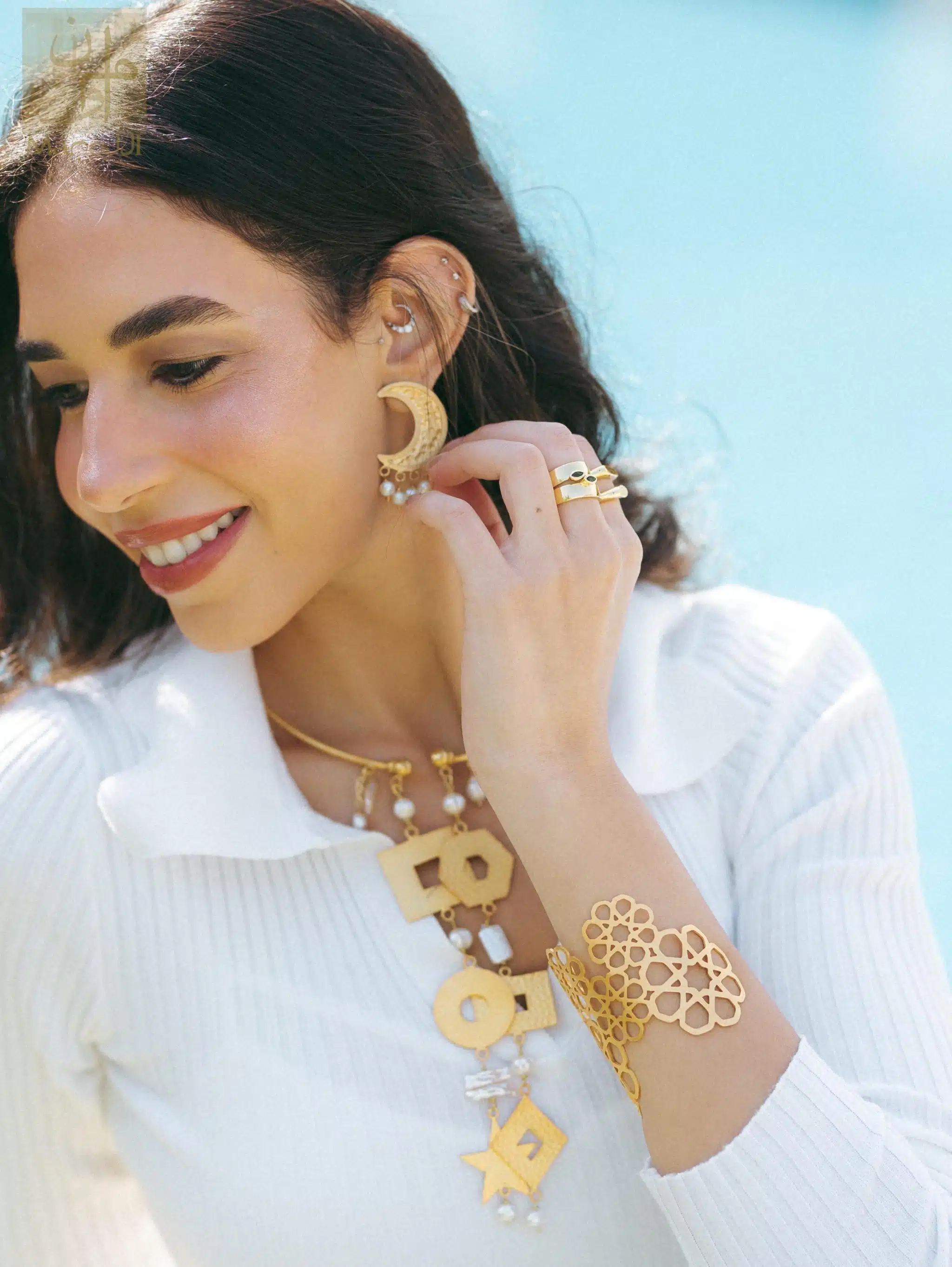Hand made sterling silver gold plated necklace with cultivated pearls Price LE 7500