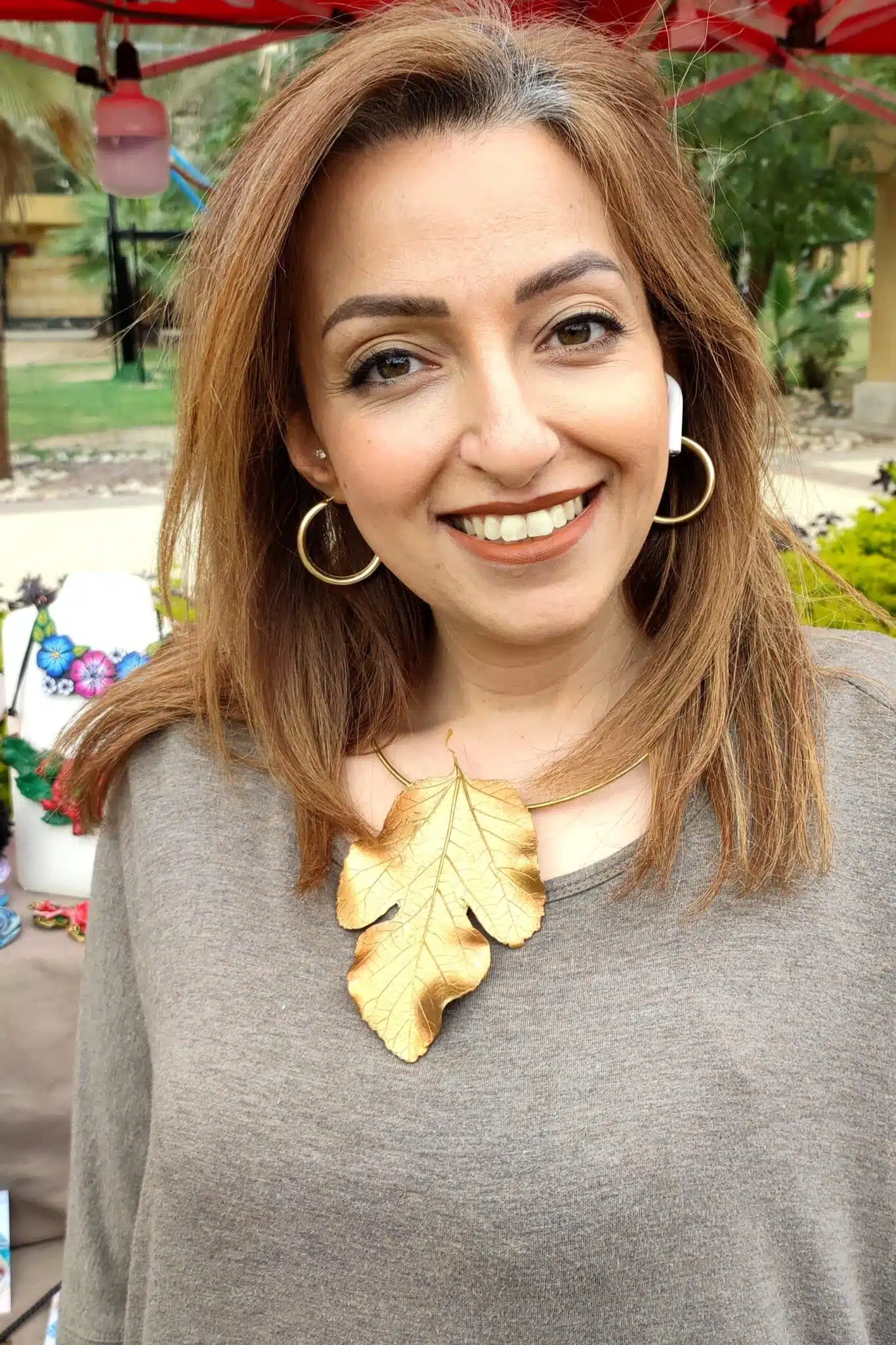 The golden leaf necklace gives a stylish and unique look to the modern woman. It is suitable for any occasion, whether formal or informal.