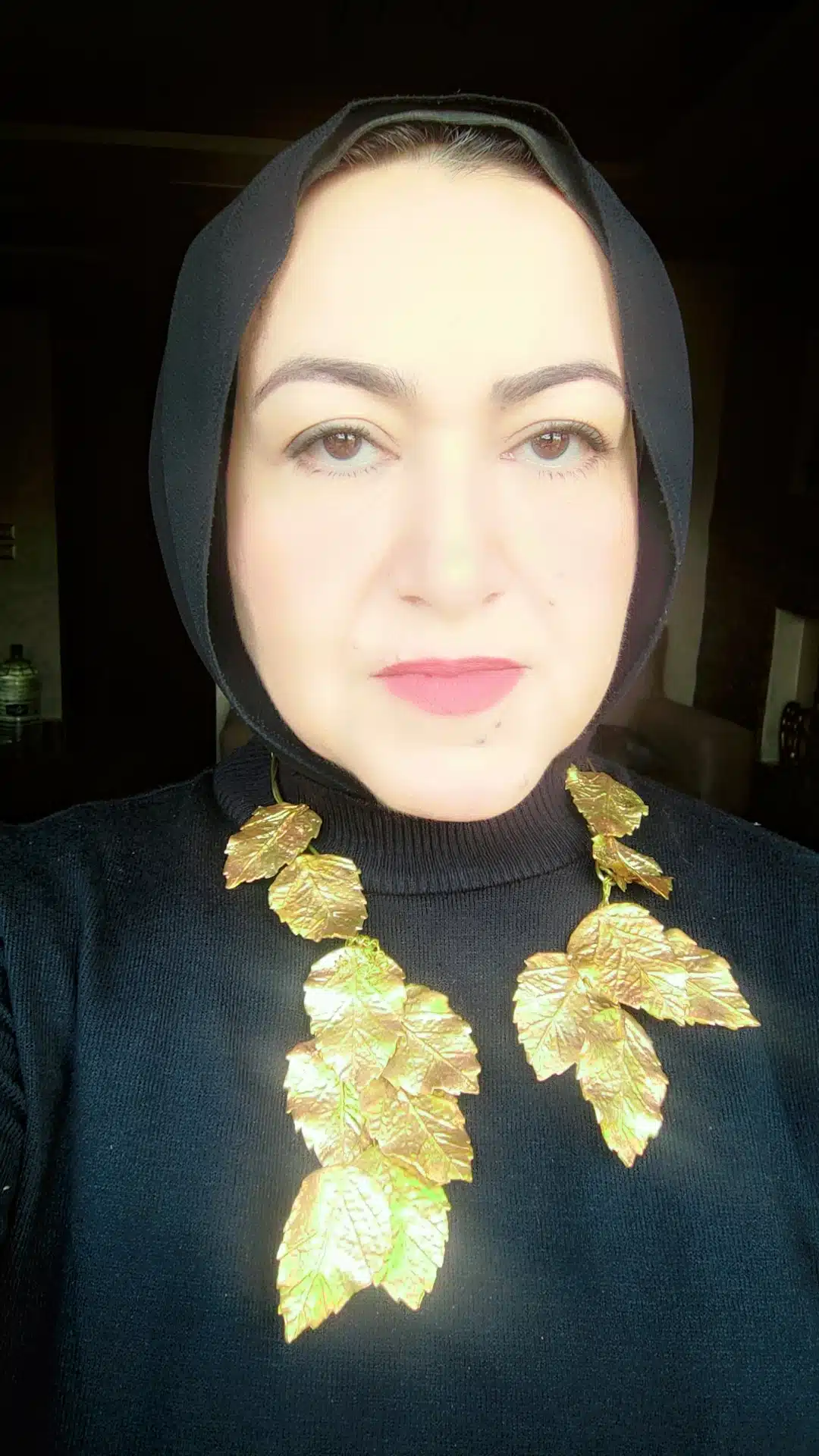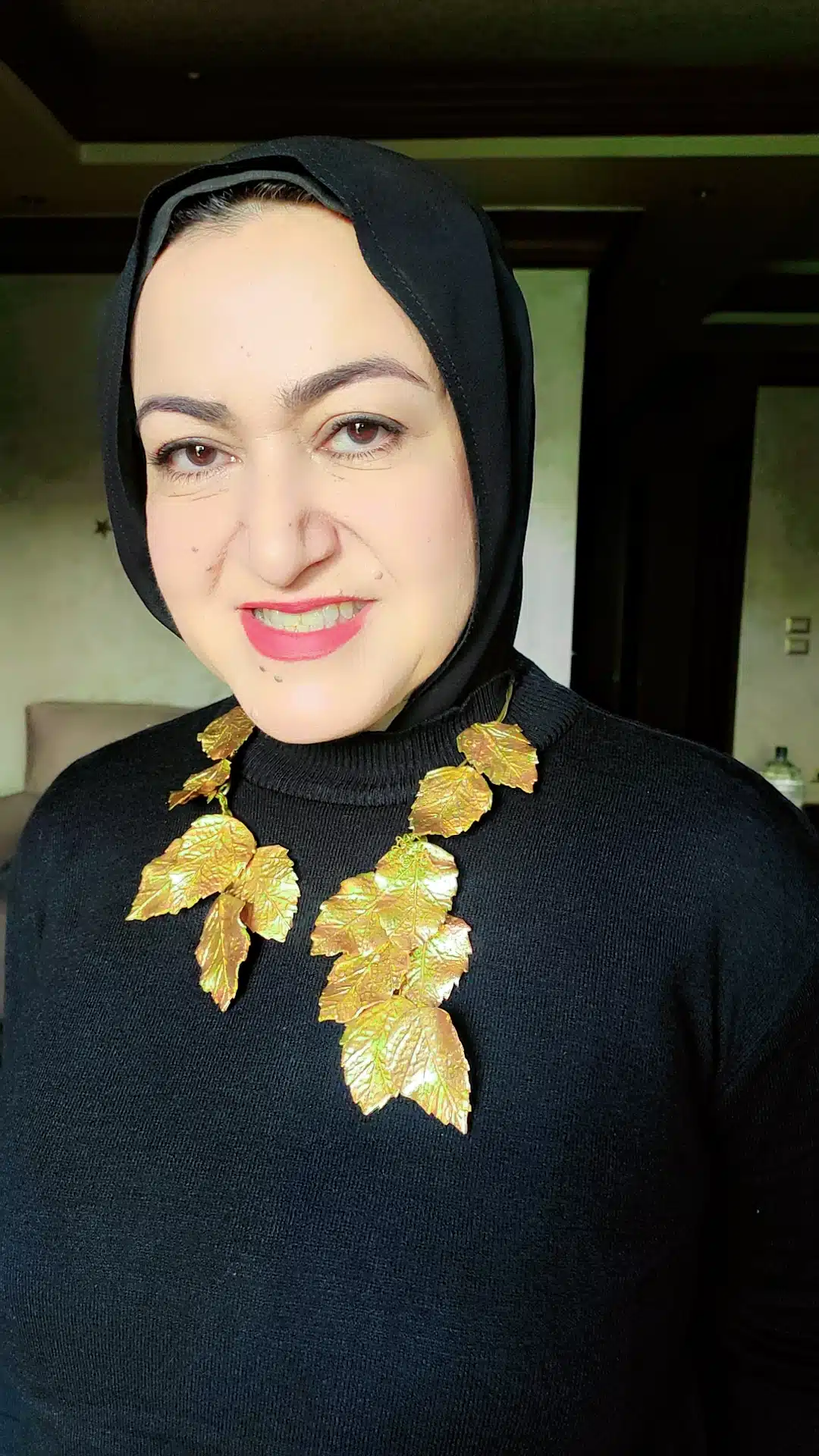 This handmade clay necklace is a simple and elegant piece of jewelry. It features a chain of golden leaves connected together by a copper ring. The leaves are made of golden clay and are carefully crafted to mimic the shape of natural leaves. The chain of leaves consists of a single layer and is carefully connected together. This allows the chain to move freely, giving it a dynamic look. The necklace is suitable for everyday wear or special occasions.