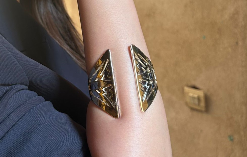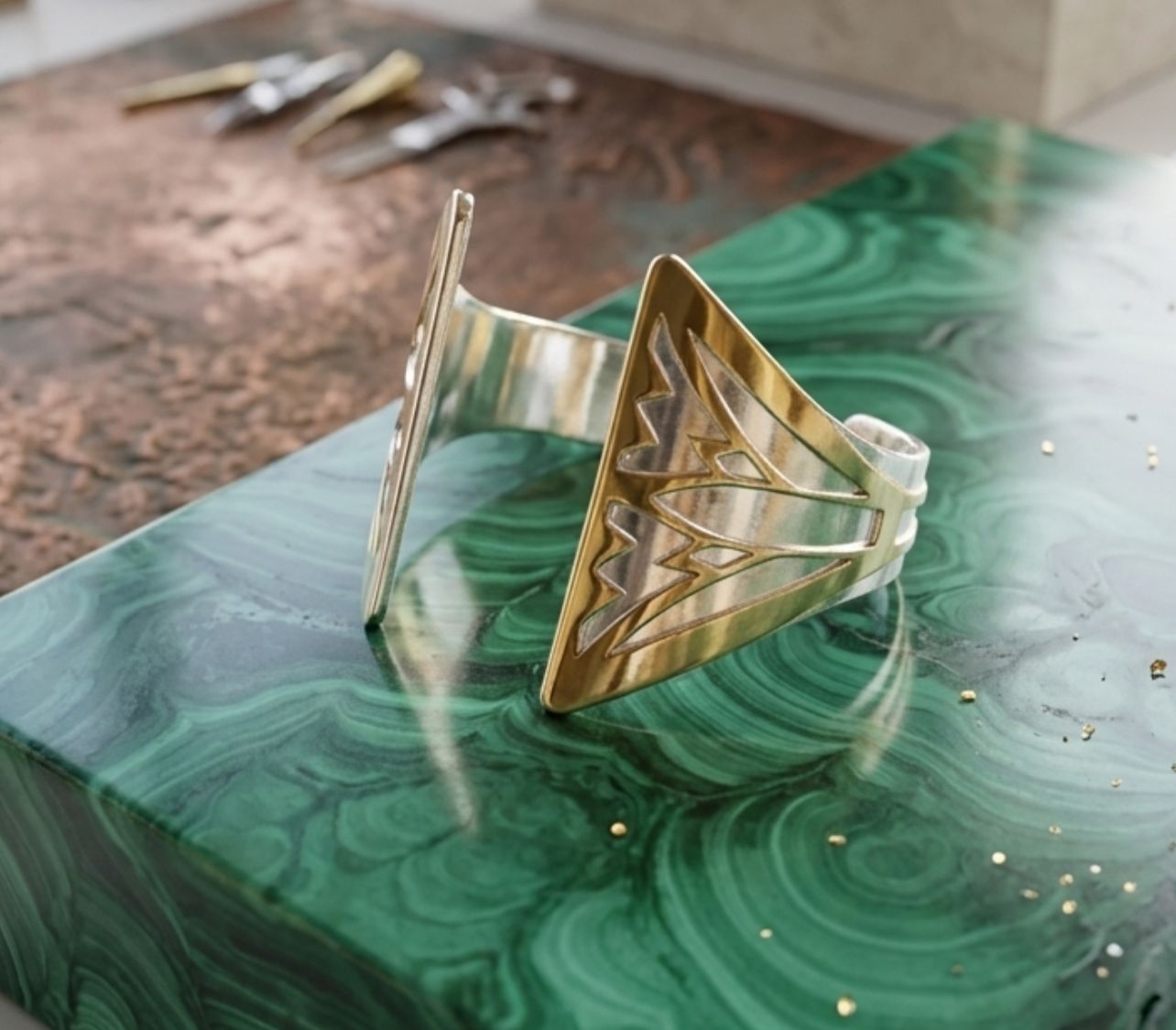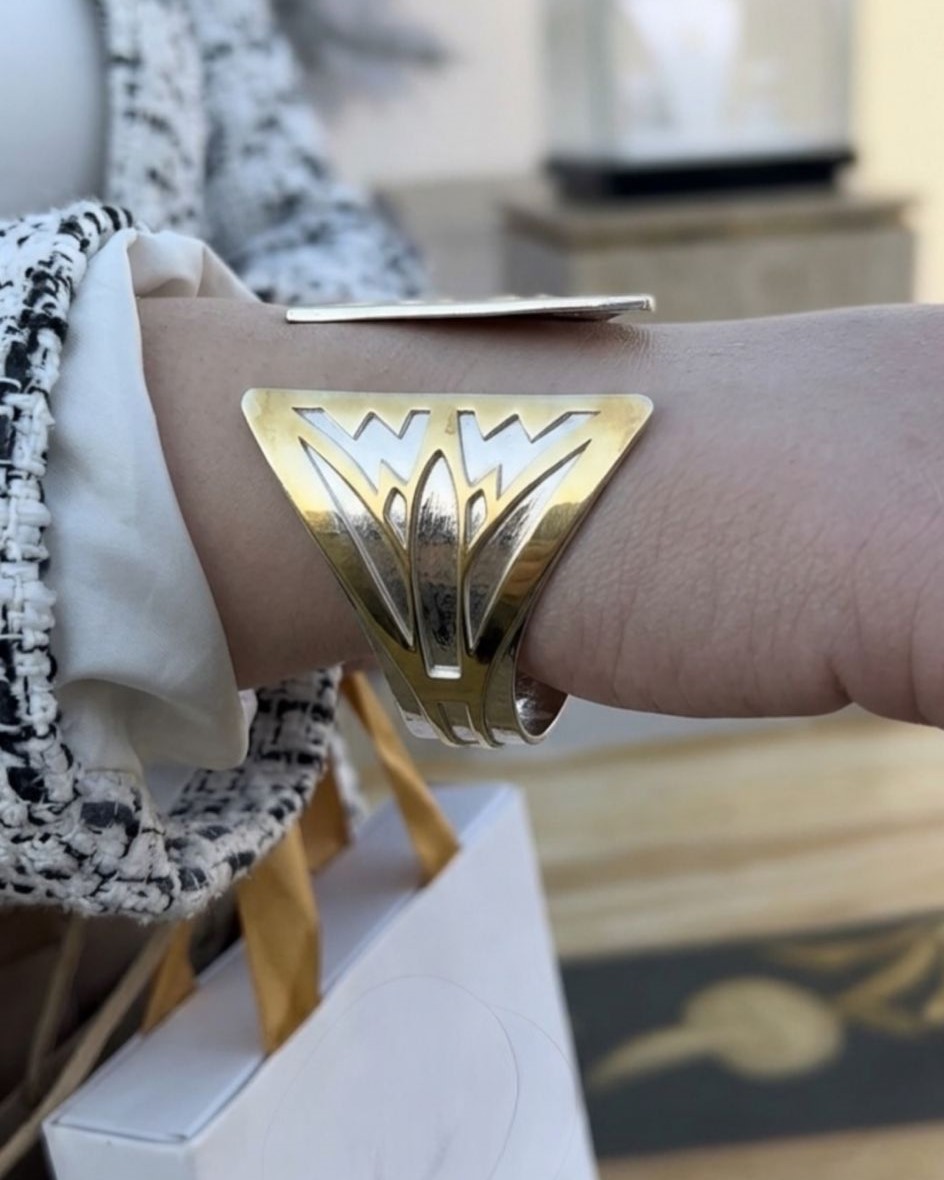 This bracelet mirrors the lotus motif, symbolizing purity and renewal. The yellow and white enamel accents enhance its intricate design, creating a sophisticated, cohesive look when paired with the earrings.
