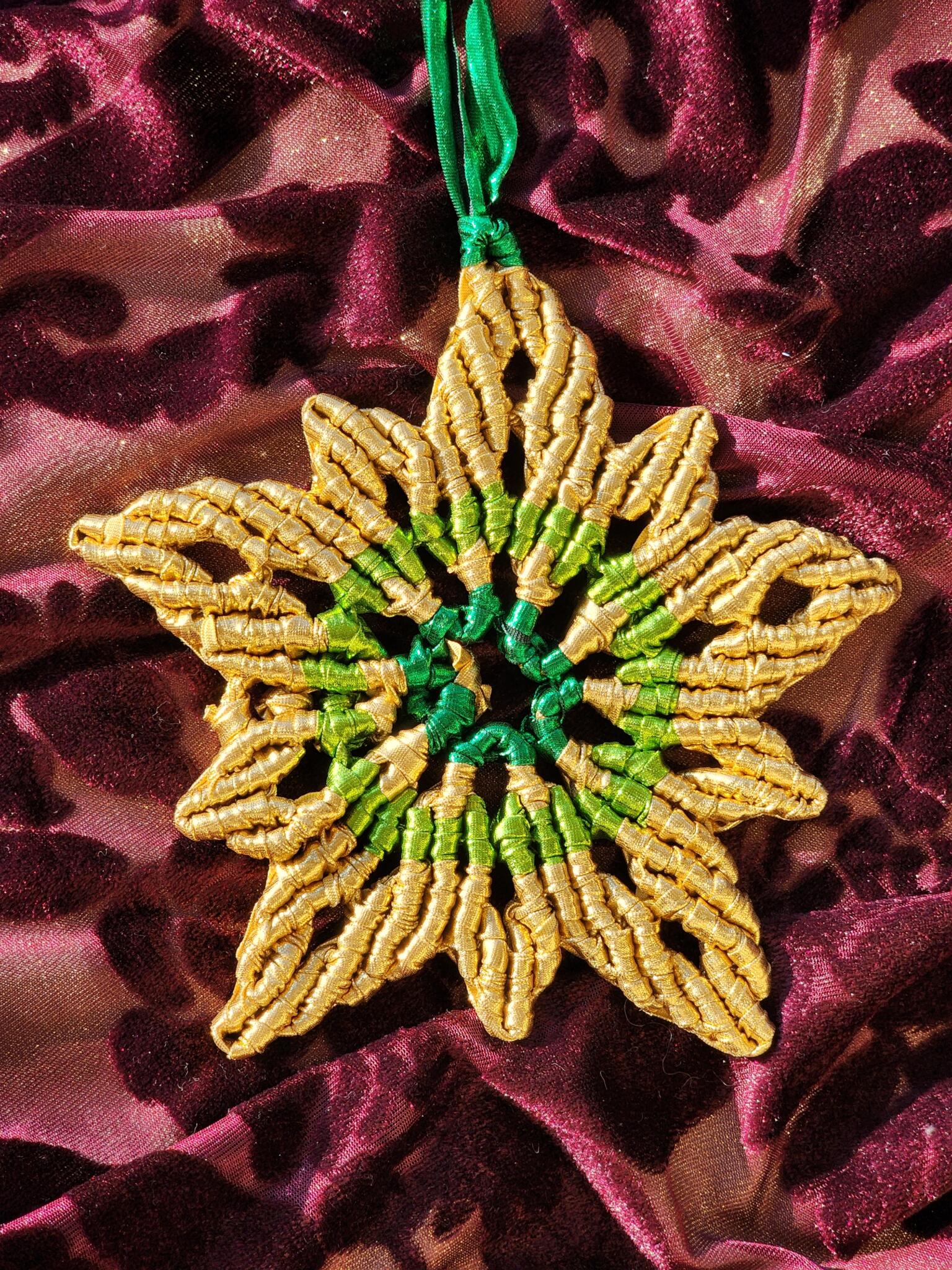 Colors: light and dark green , gold And red Metallic Ropes .