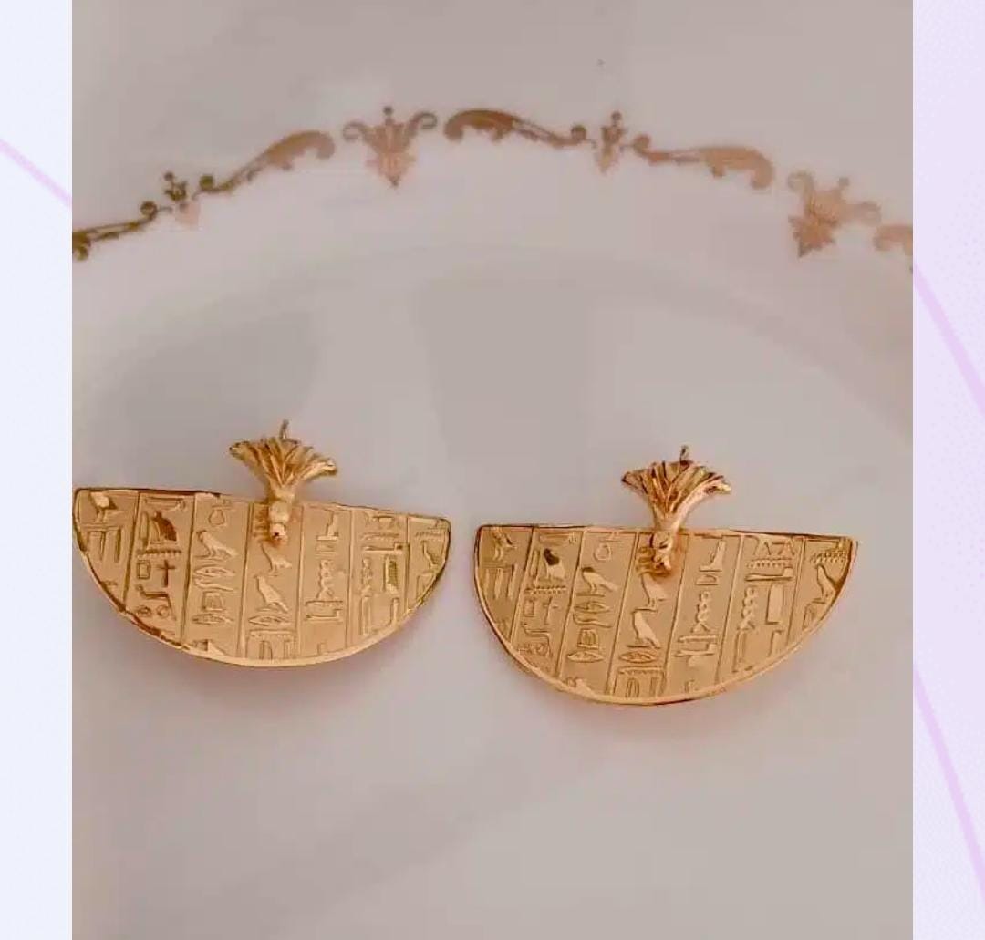 Gold plated 18k hyroglyphic earrings with stud