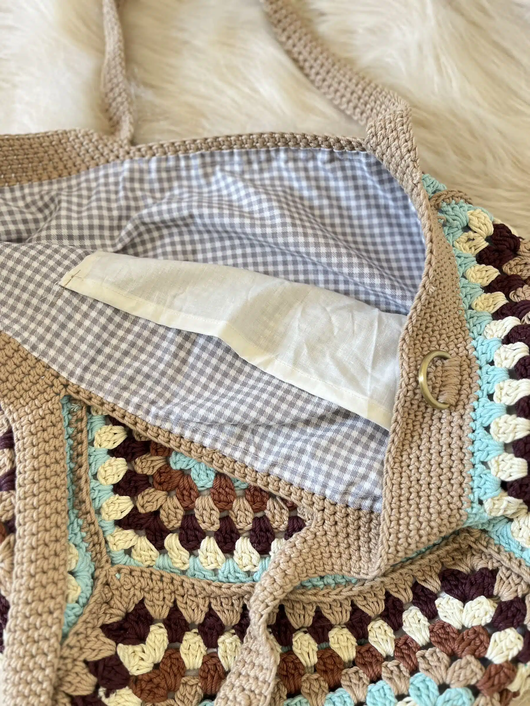 شنطه هاند ميد كروشيه مقاس كبير الوان مميزه مصنوعه من خيوط القطن سهل التنظيف مدعمه ببطانه داخليه