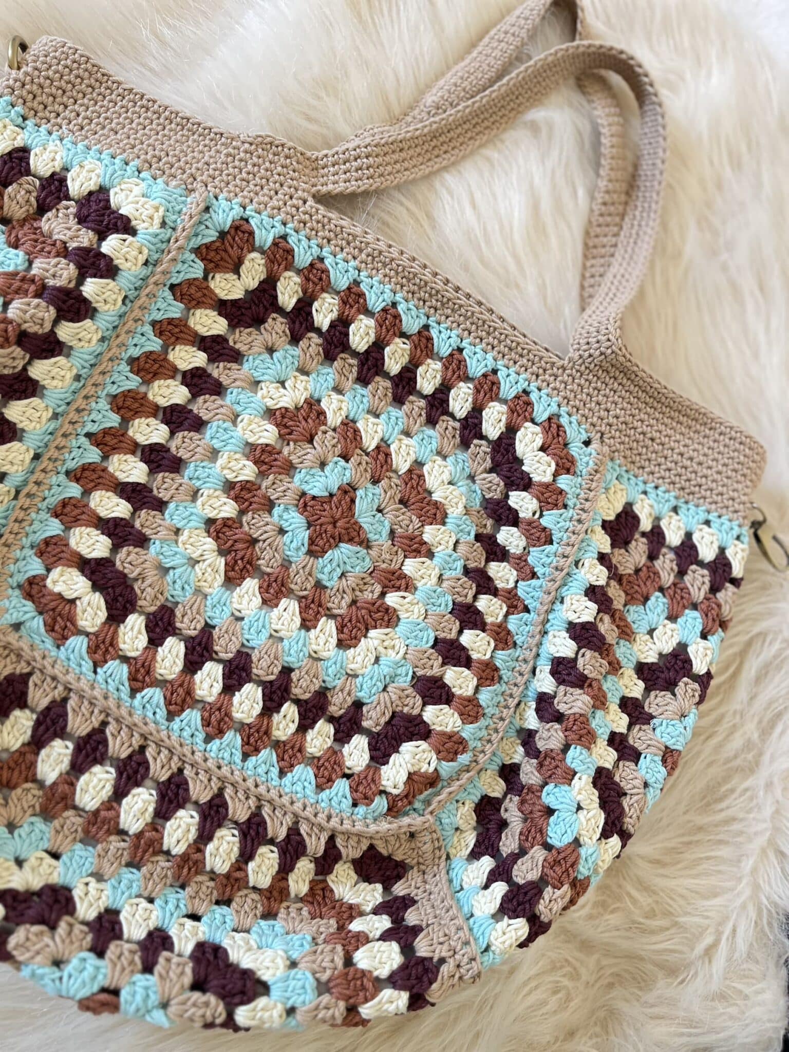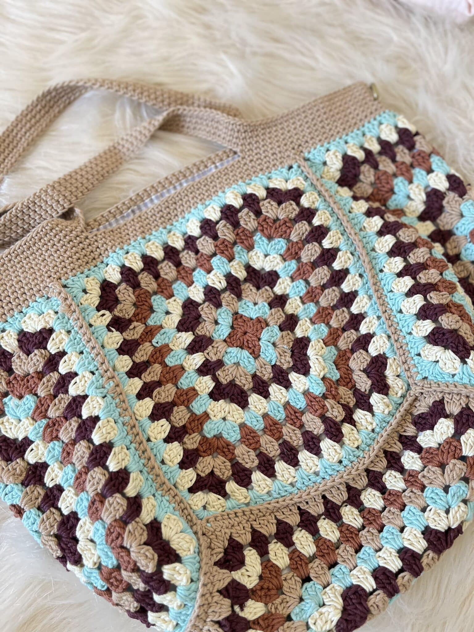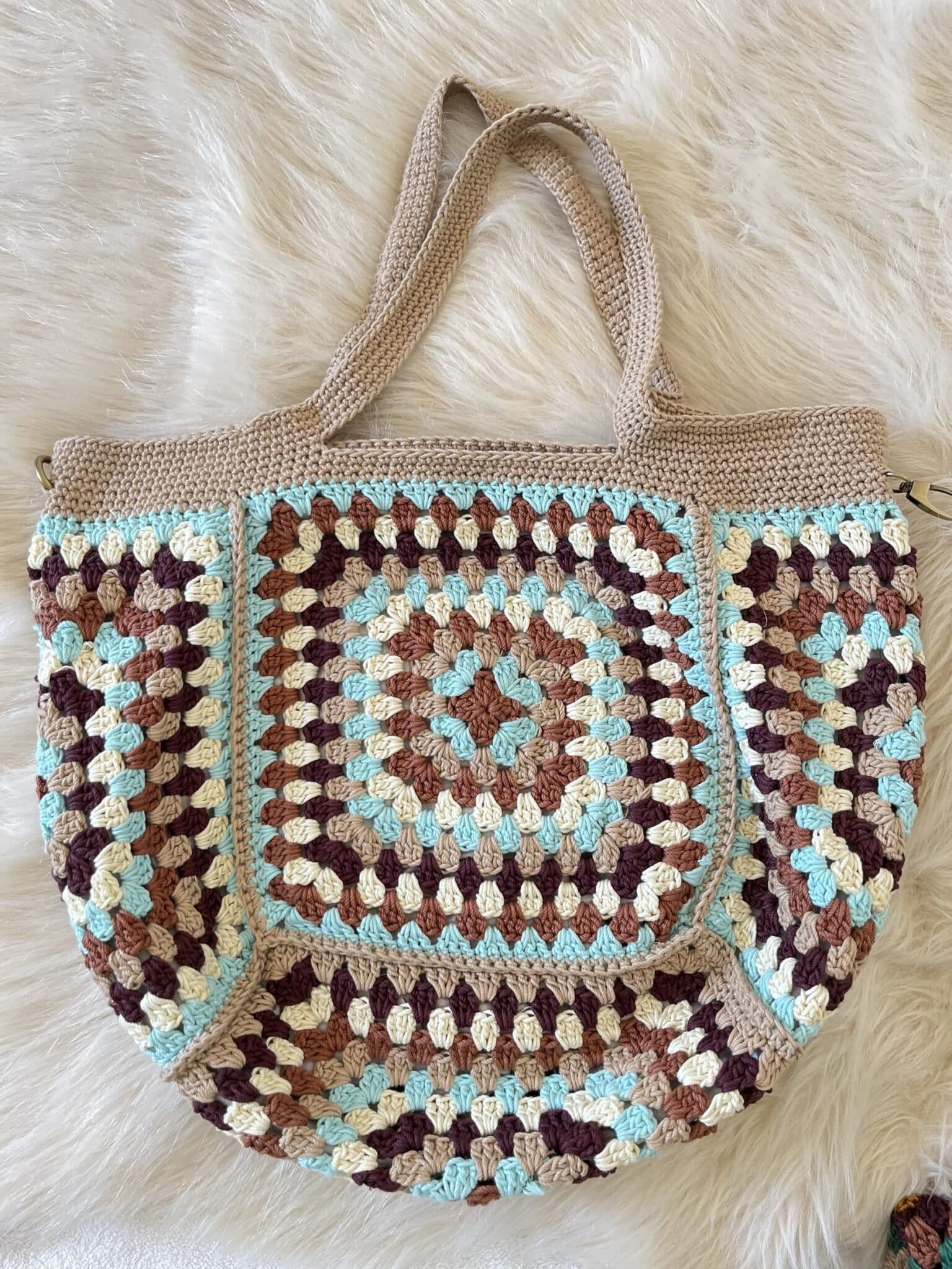 شنطه هاند ميد كروشيه مقاس كبير الوان مميزه مصنوعه من خيوط القطن سهل التنظيف مدعمه ببطانه داخليه