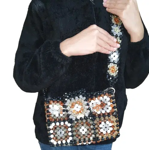 colorful hand bag , made with acrylic beads adding a nice touch to bags collection.