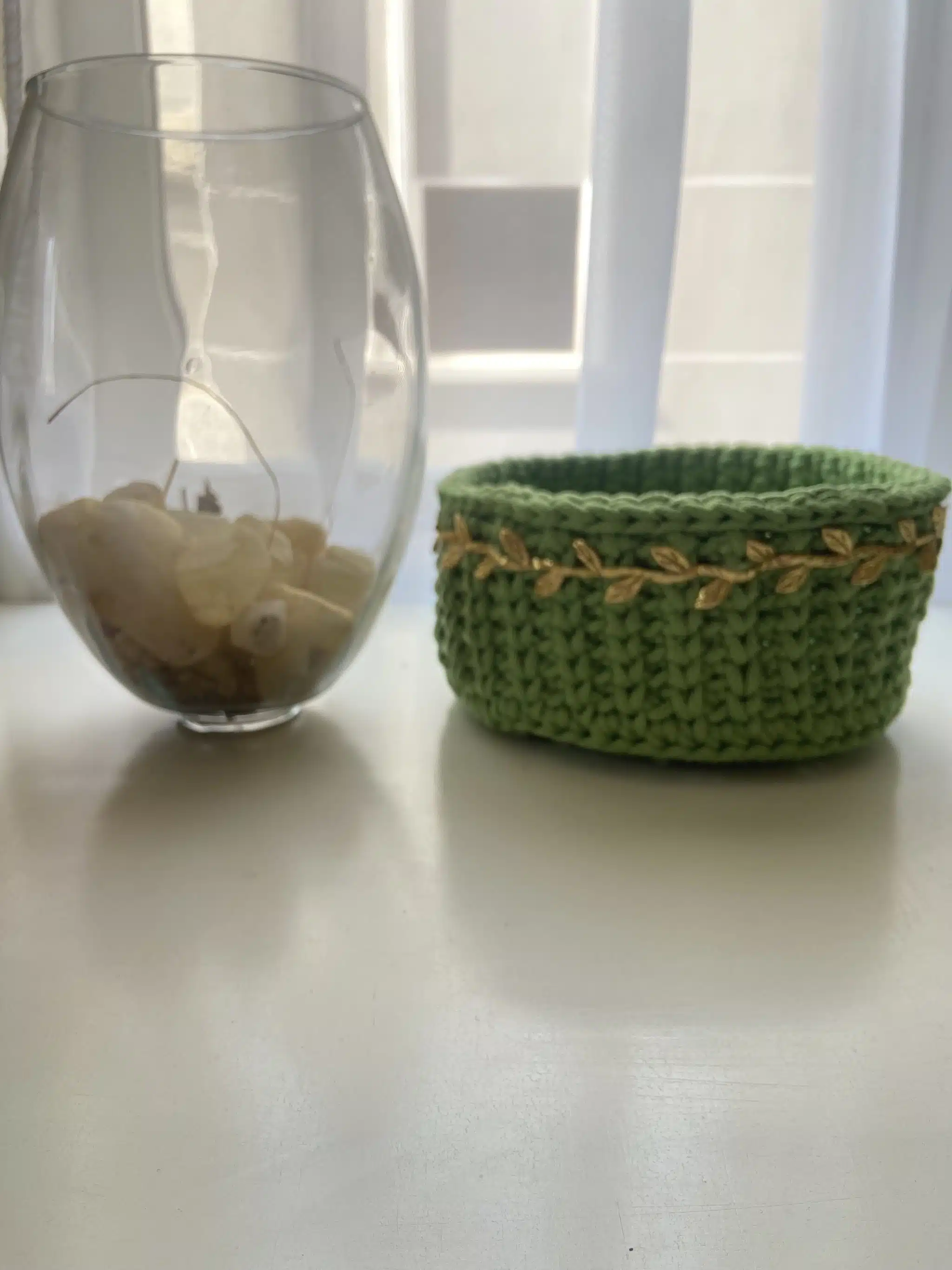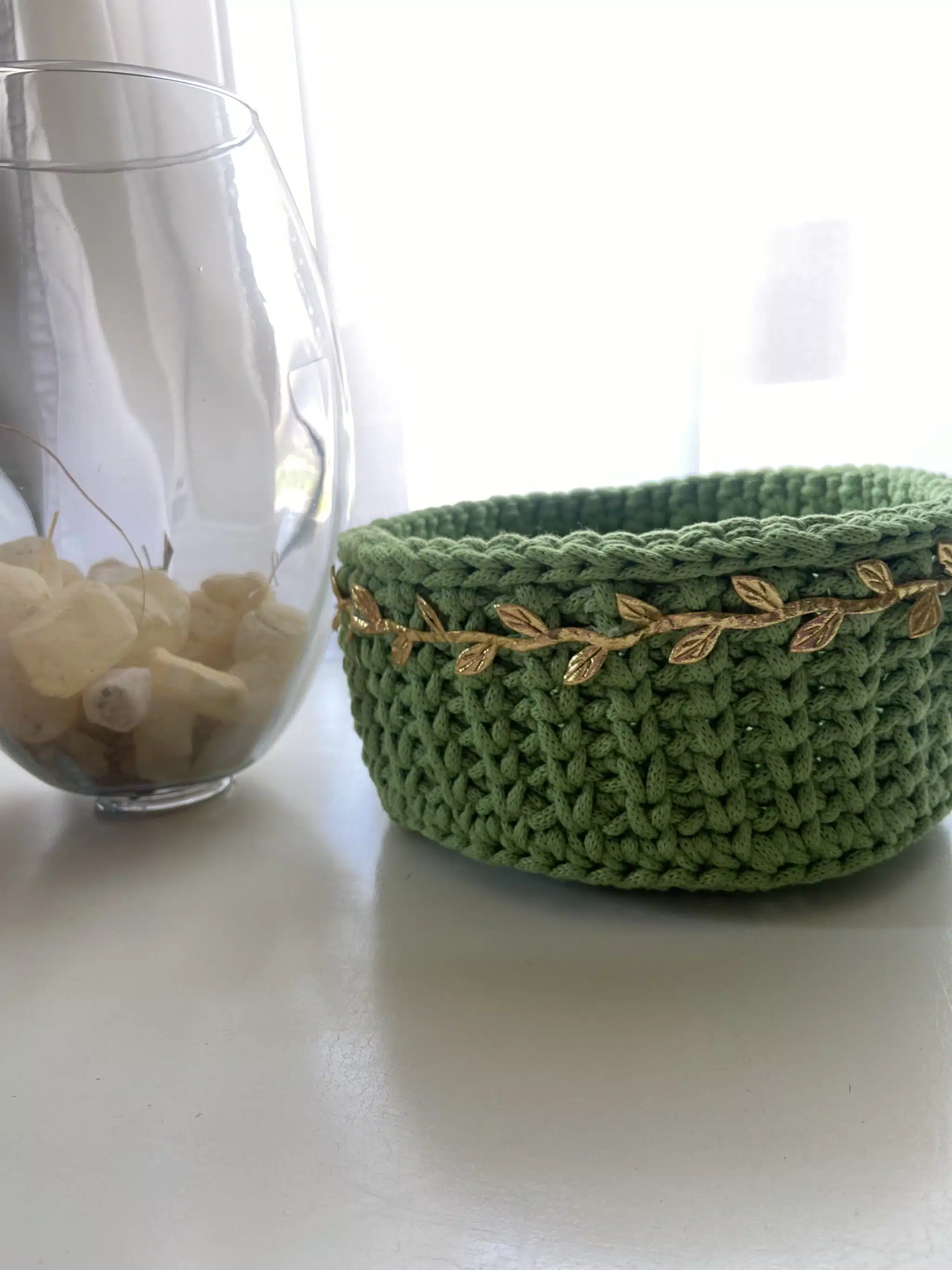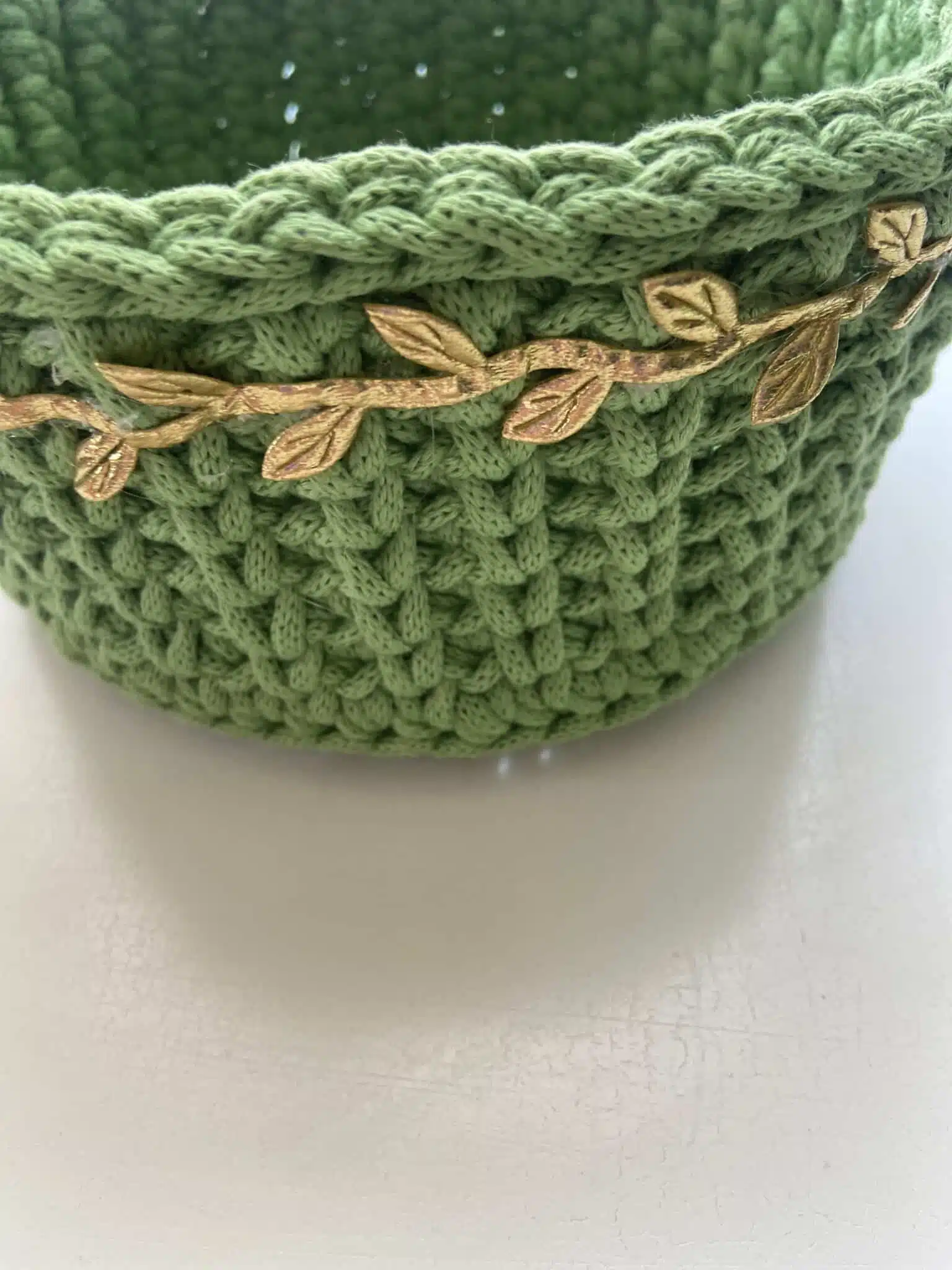 باسكت متوسط الحجم من اللون الاخضر مزين بشريط ذهبي
