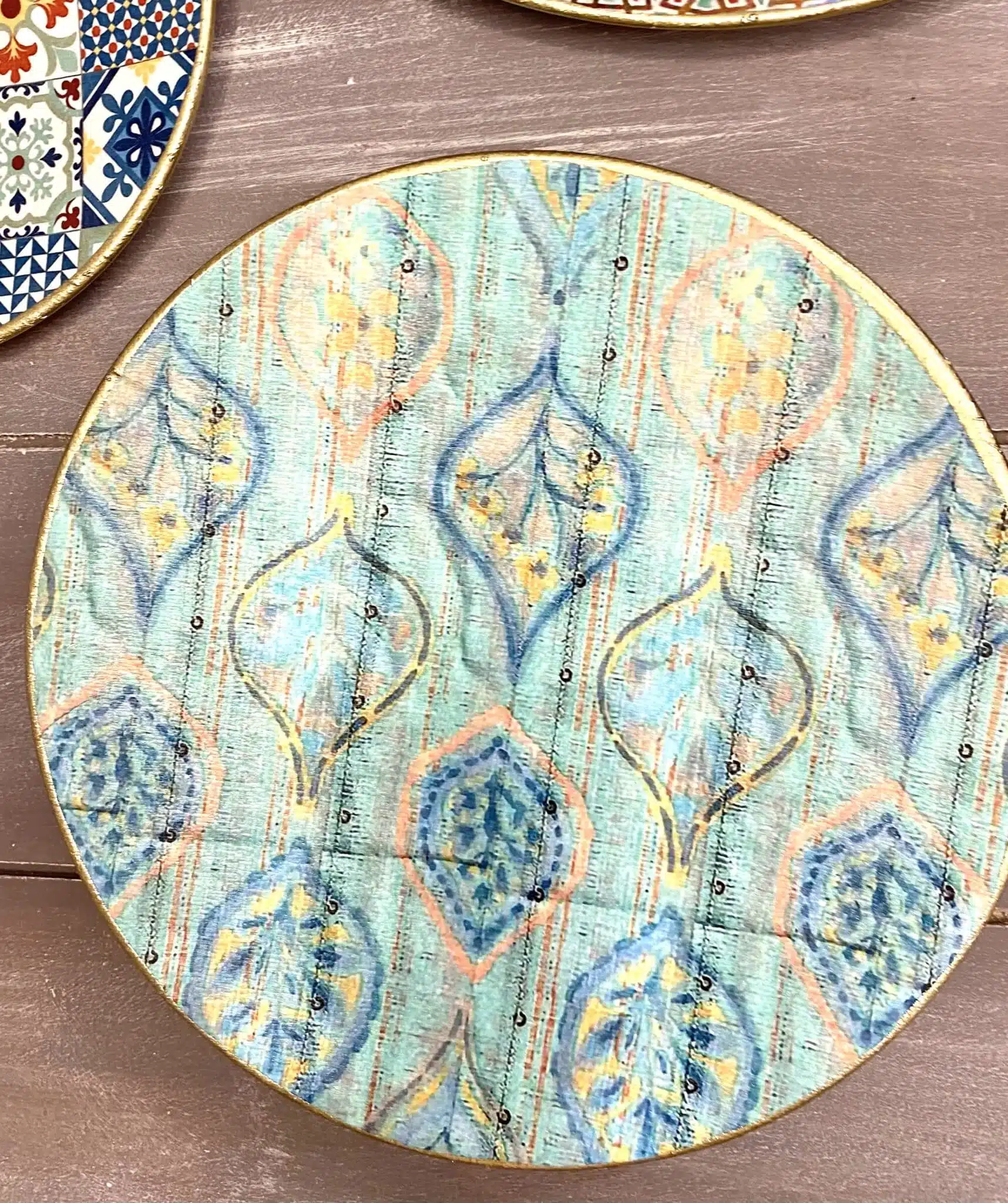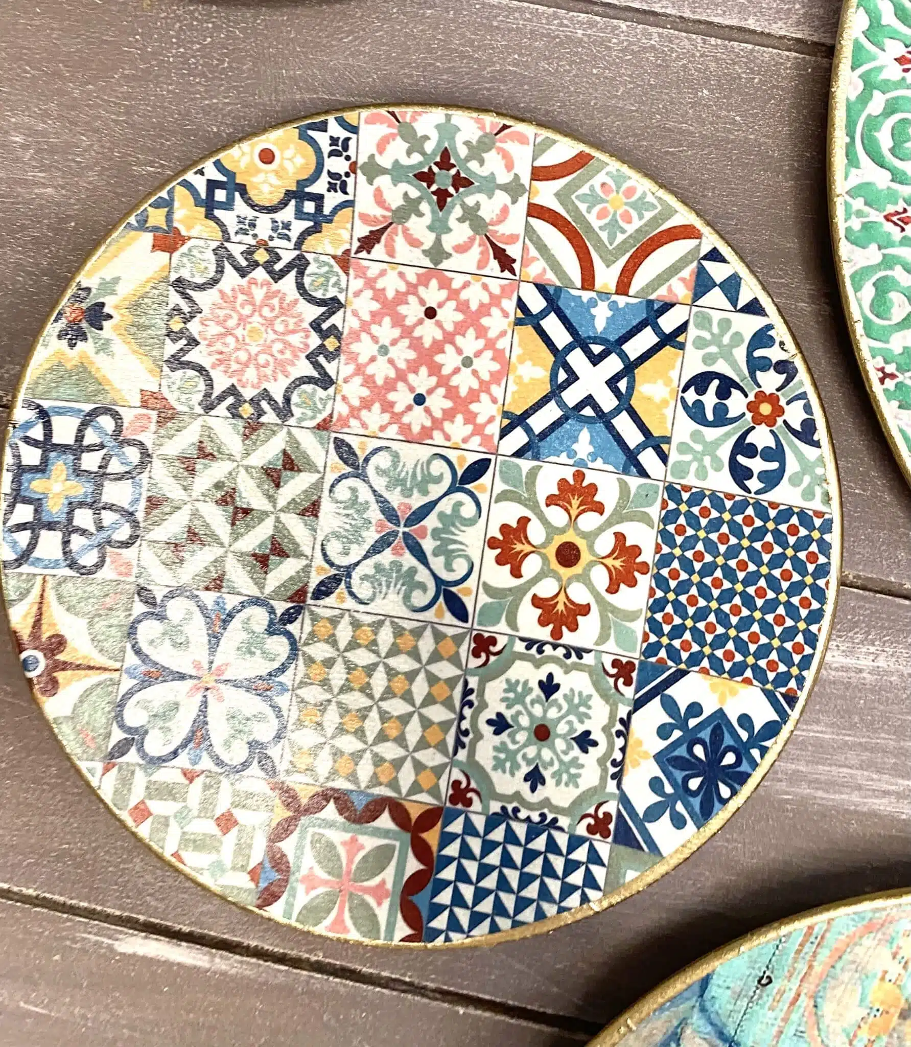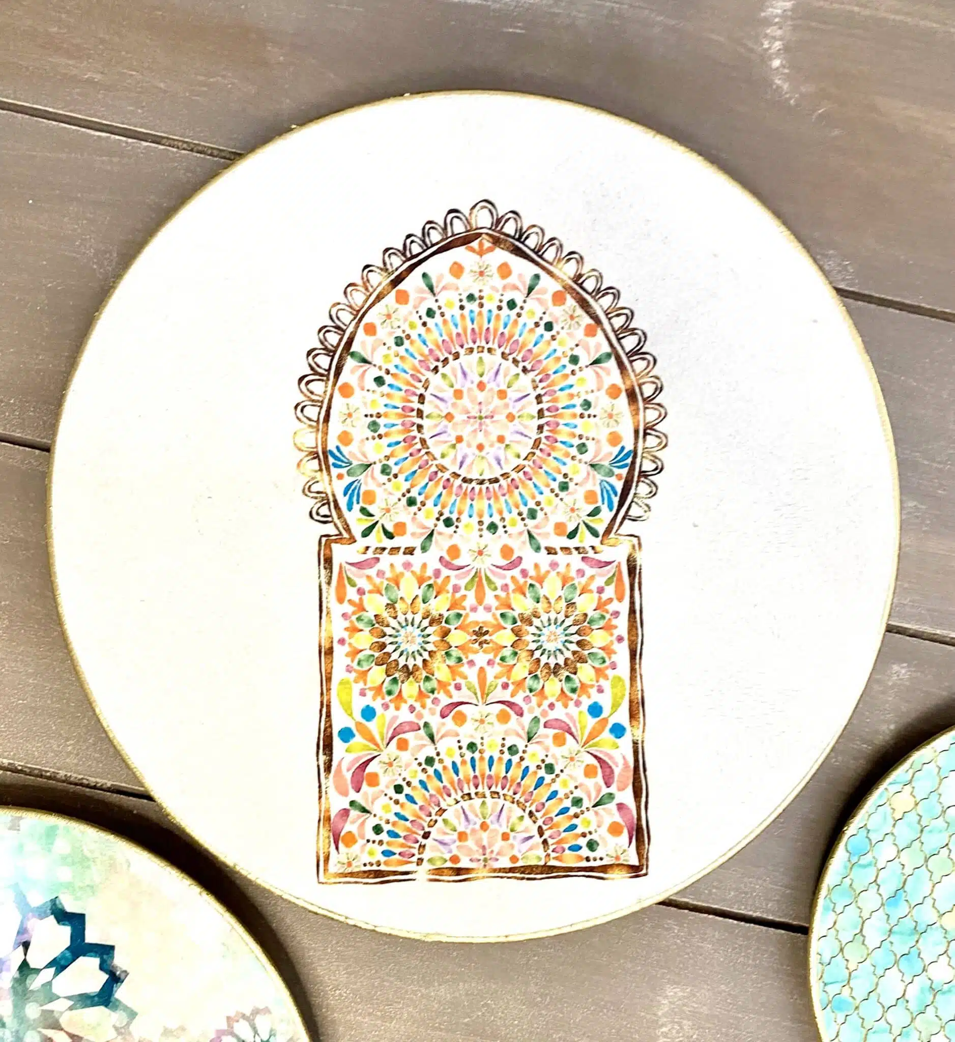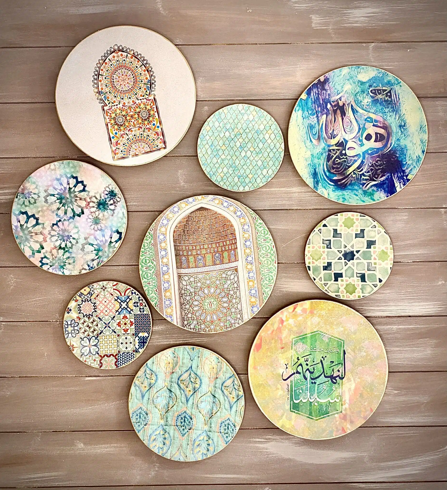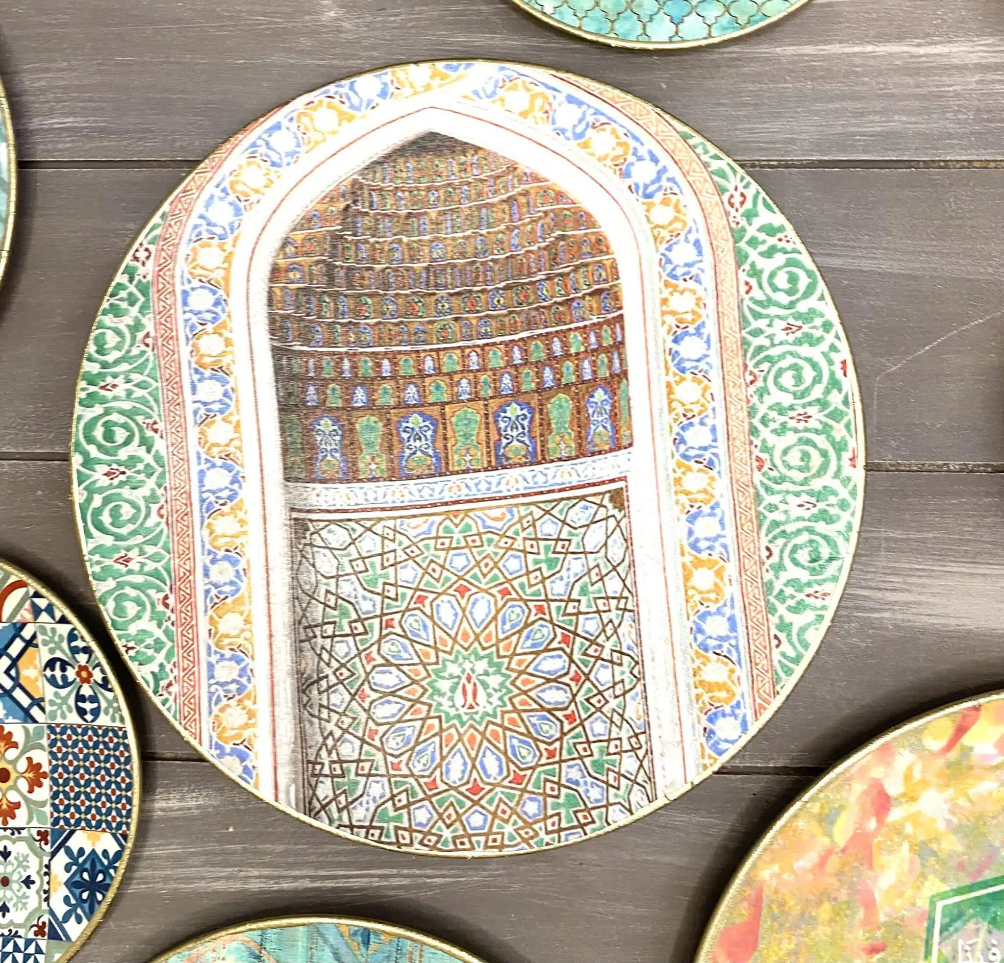 Decoupaged wall plates collection with the them of morocan doors