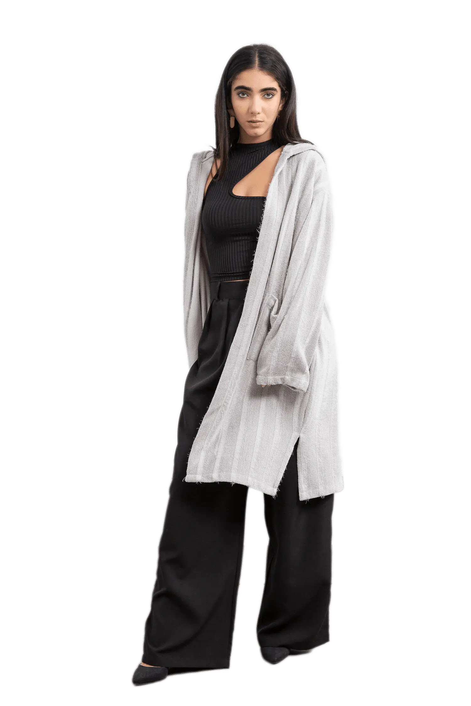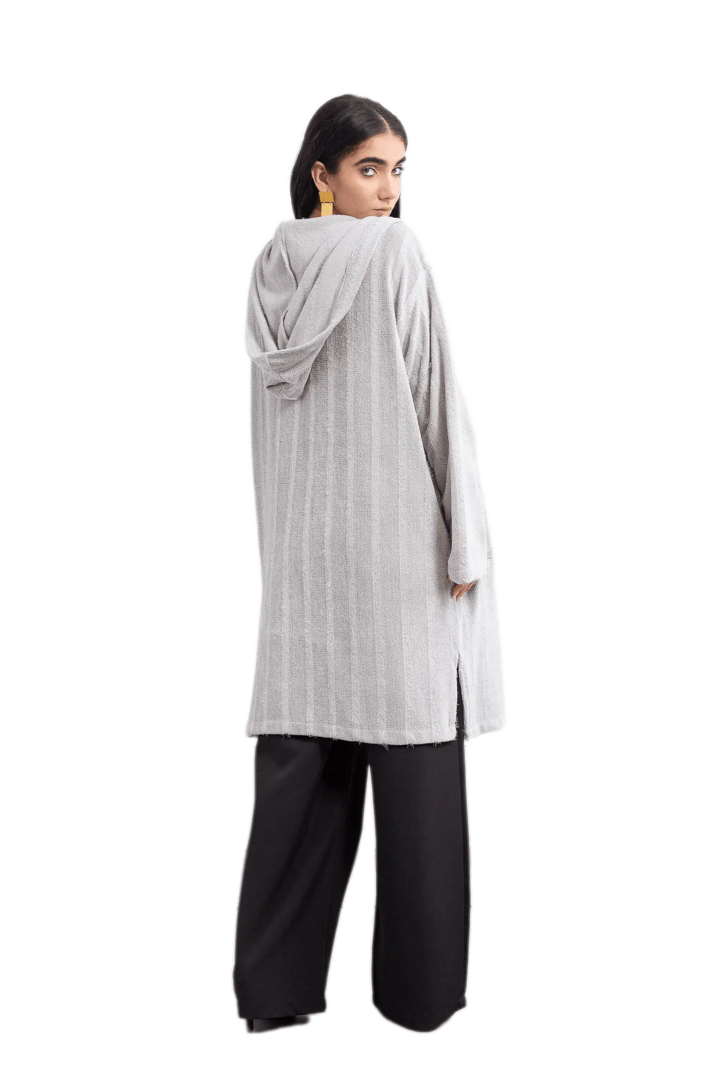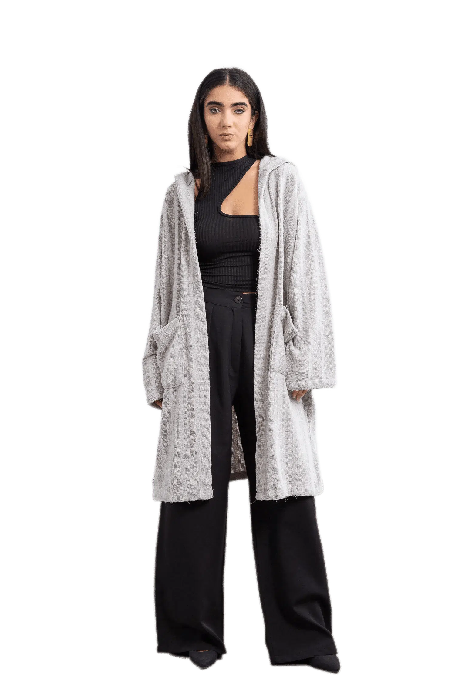 soft fluffy knit cardigan with hoody and pockets, side slits