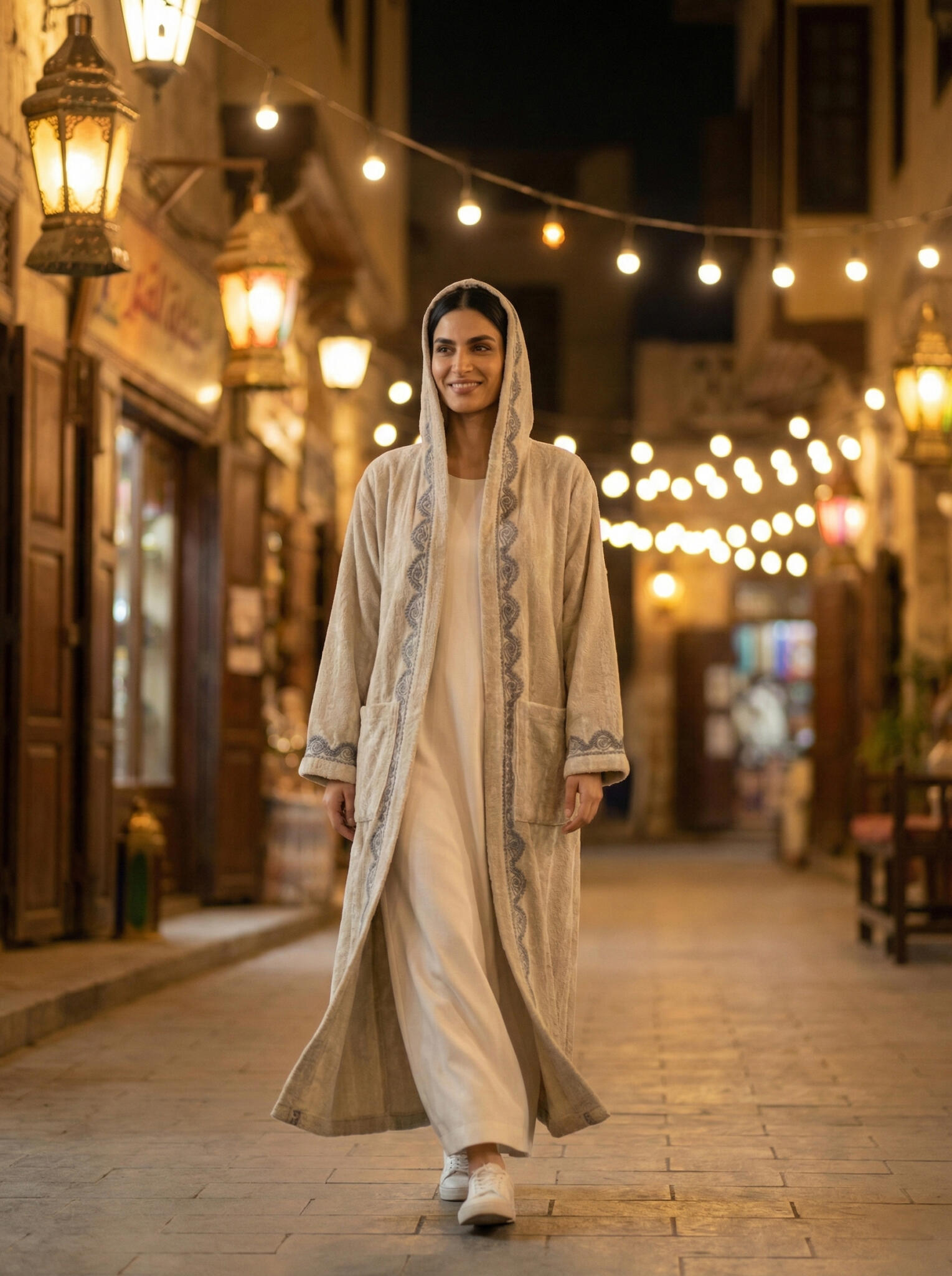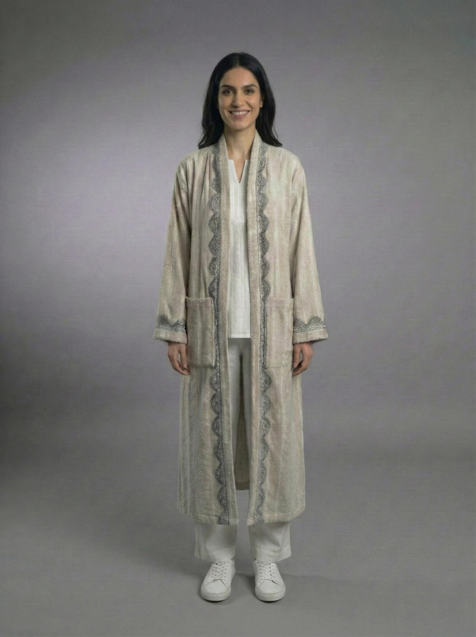 “Cozy elegance with a soft neutral tone for everyday layering.”