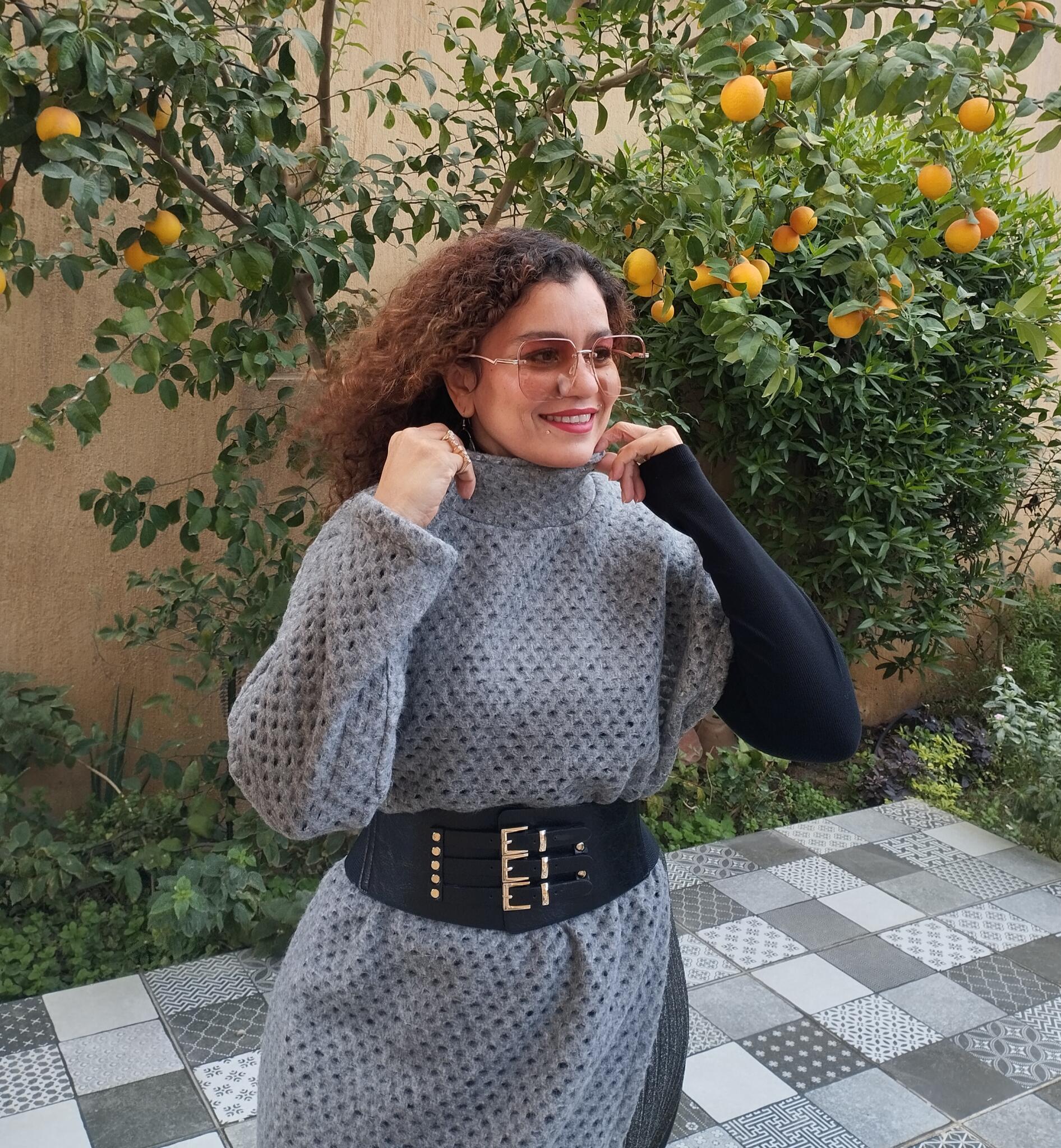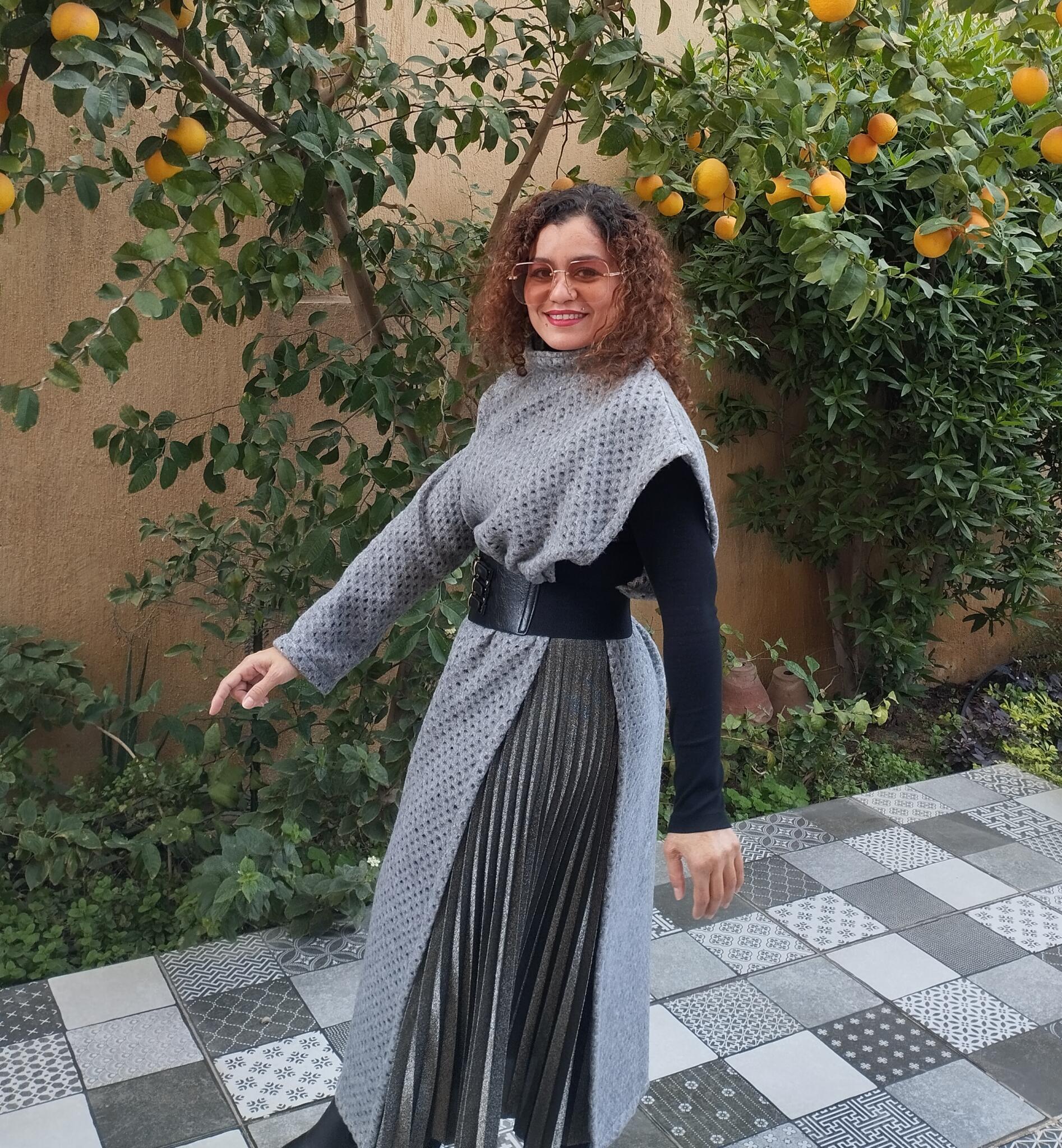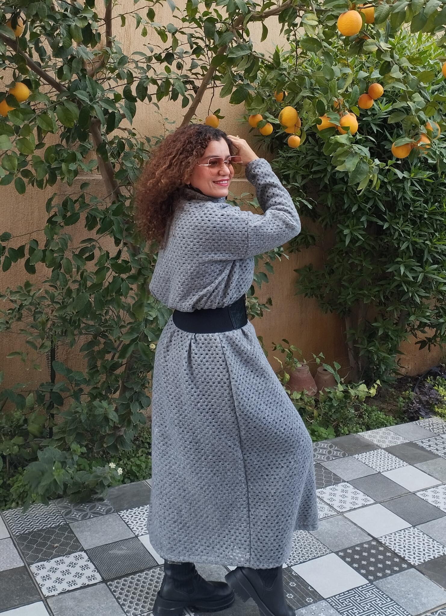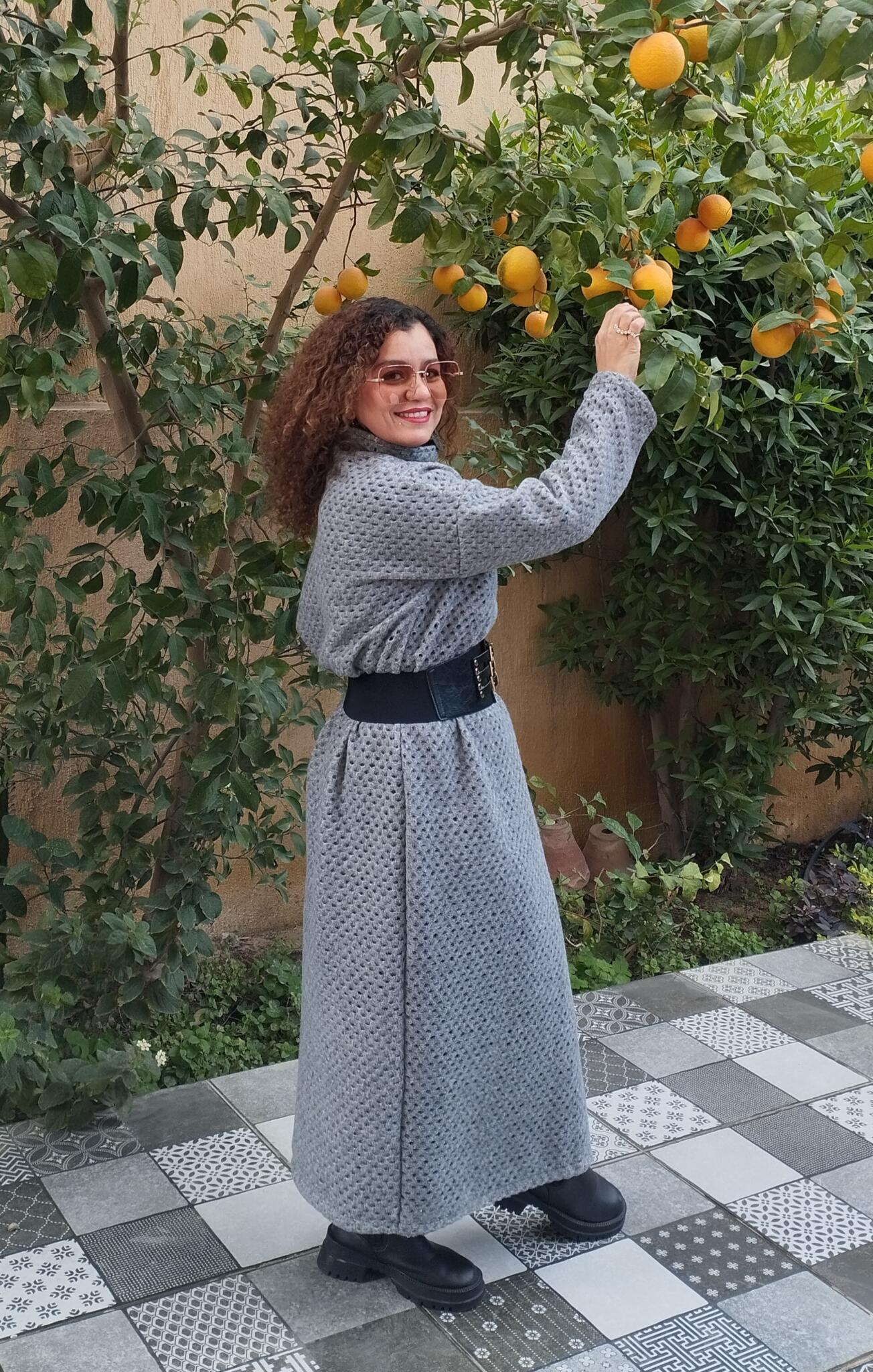 - Grey long shawl wool mesh fabric style it in many ways to add value to your outfit