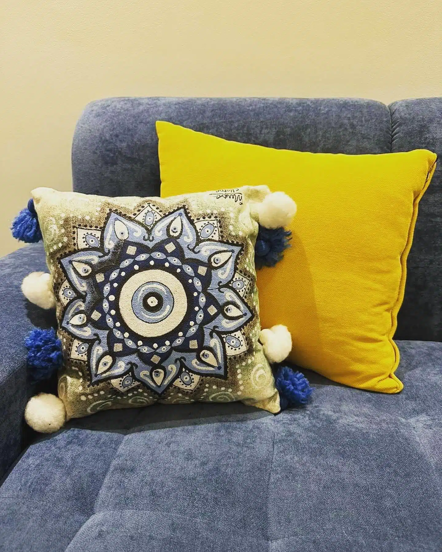 Sofa Cushions hand painted by an artists with premium colors can’t be removed by washing or cleaning