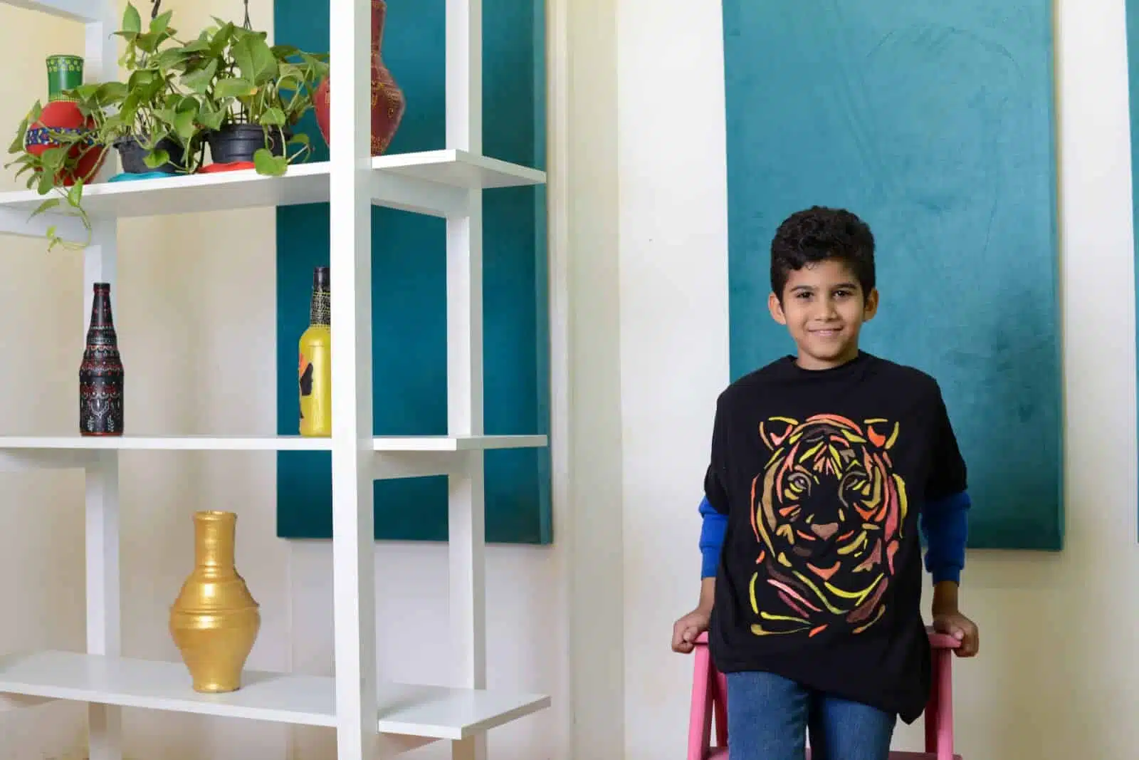 a cotton black tshirt painted on back with a lion