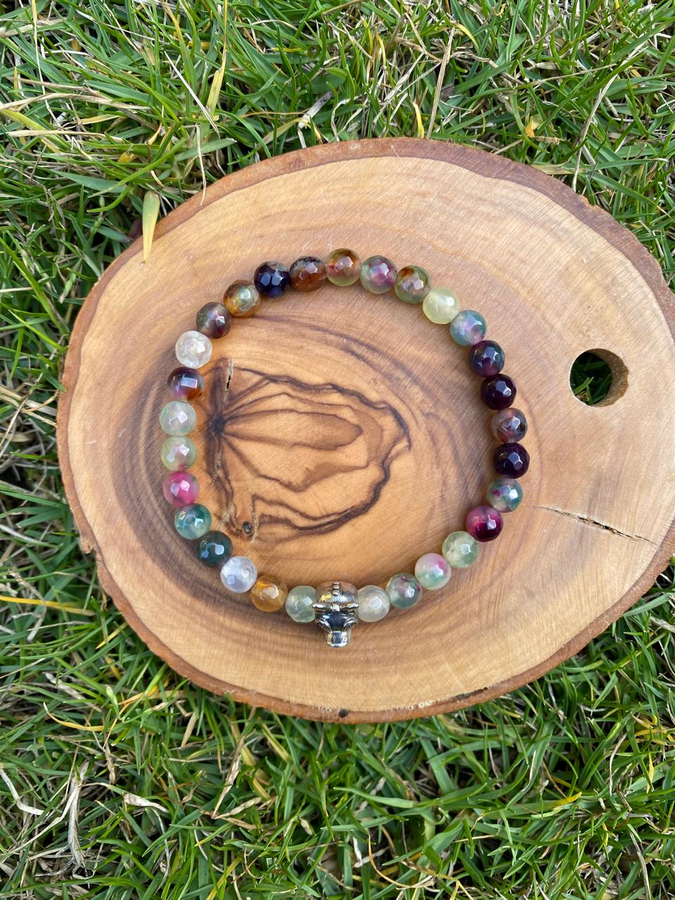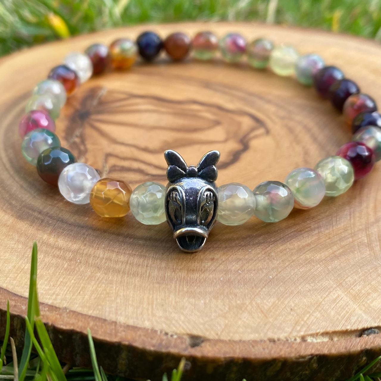 Colorful faceted tourmaline bracelet with a playful 925 sterling silver “Meme Duck” charm. Stretch fit for easy everyday wear.