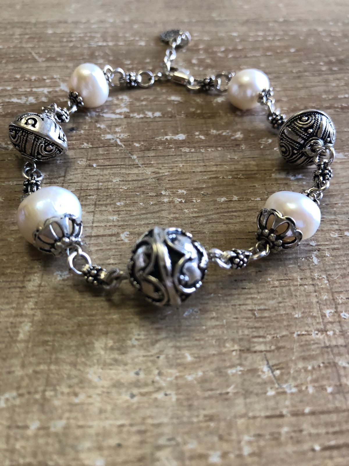 Handmade 925 Silver bracelet featuring natural pearls with silver — a classic and elegant piece that adds a touch of character to any look.