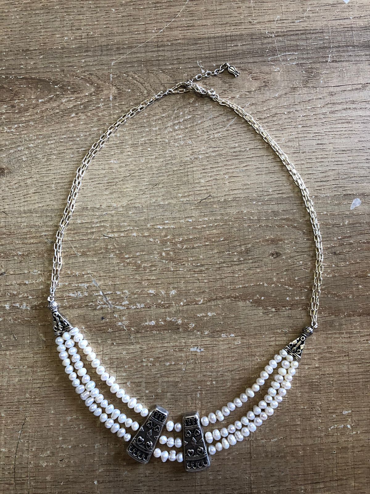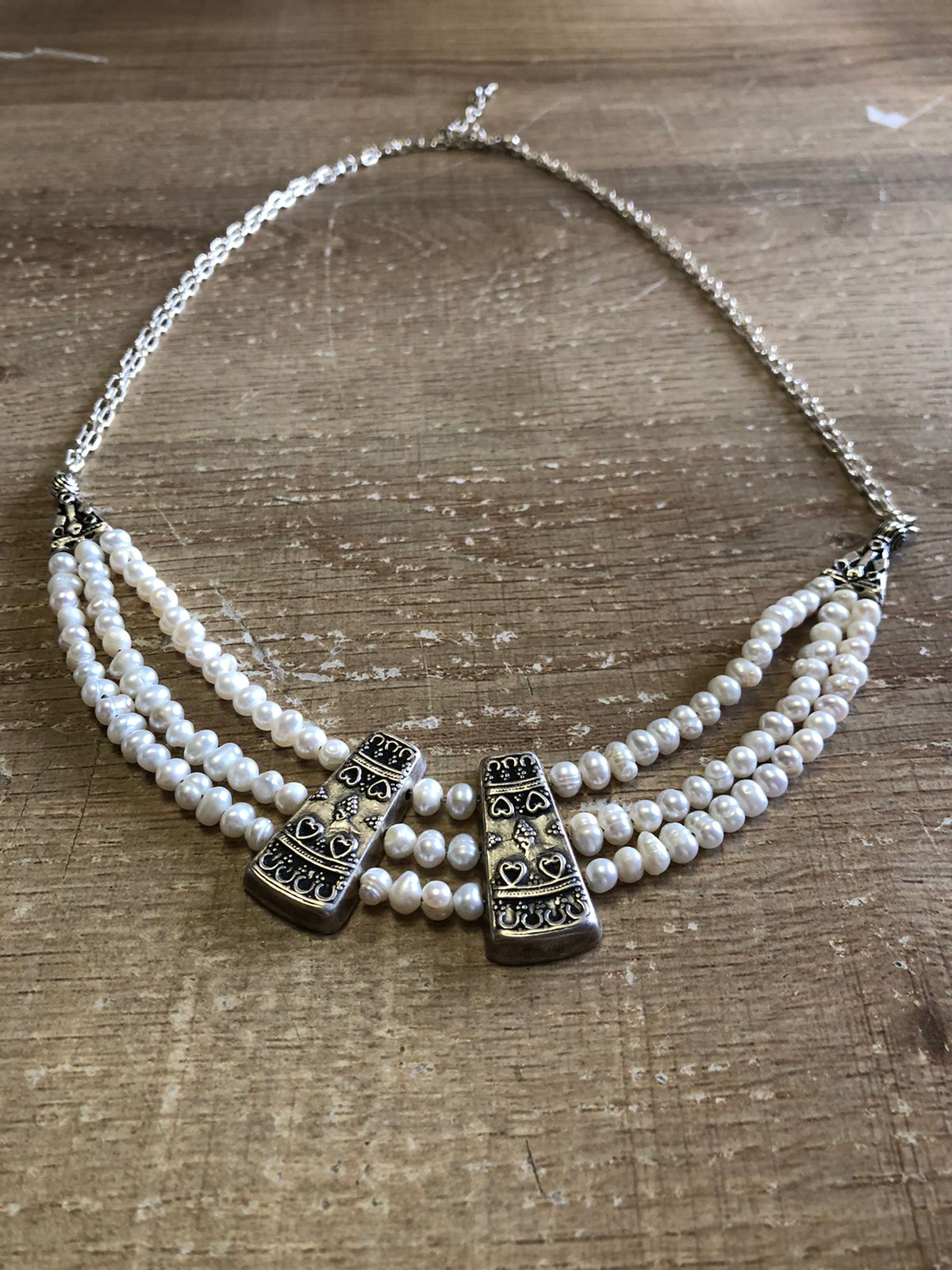 Handmade 925 Silver necklace featuring natural pearls with silver elements — a classic, elegant piece with a soft vintage touch.