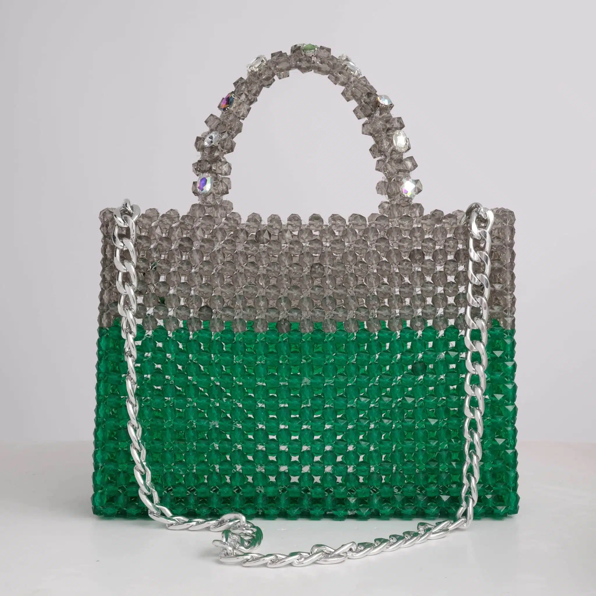 Handmade beaded bag with embellished handles, a sparkly piece of art to add to your wardrobe.