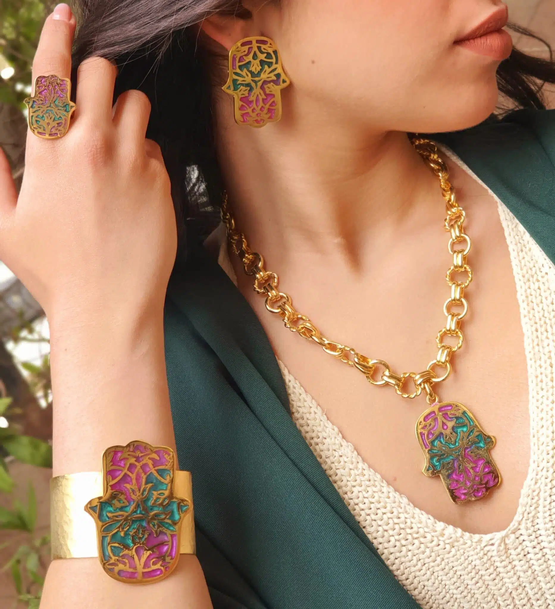 Handmade copper set plated with gold 18k and melting stones حجر العقيق a piece of ramadan traditional jewelry