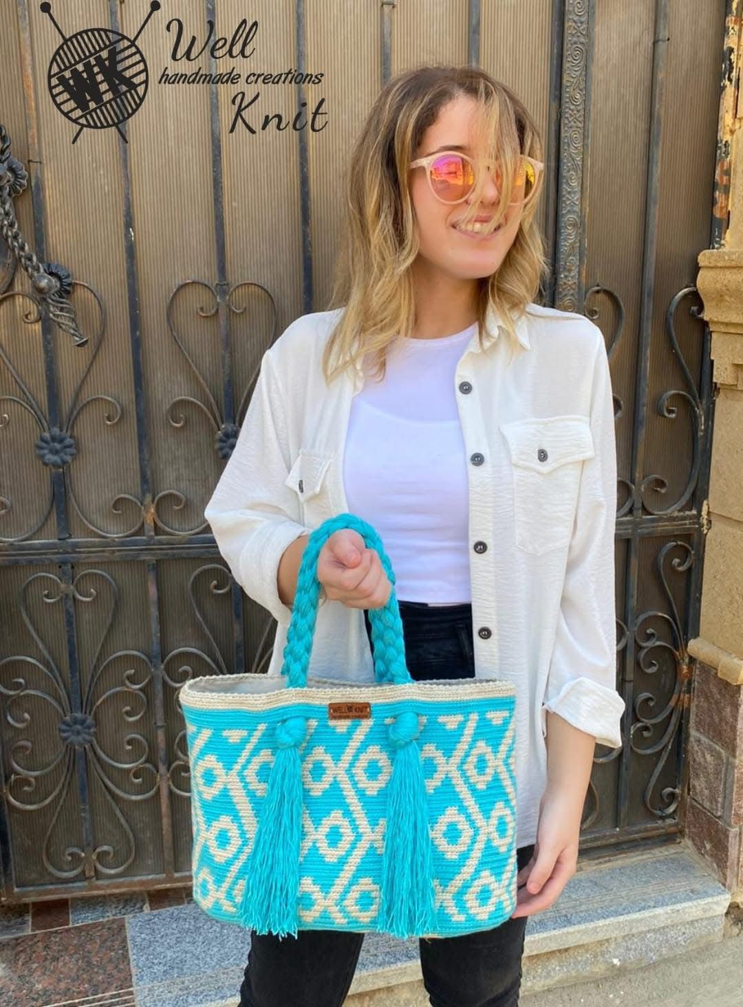 حقيبة يد كروشيه مصنوعة يدويًا بعناية واهتمام بأدق التفاصيل