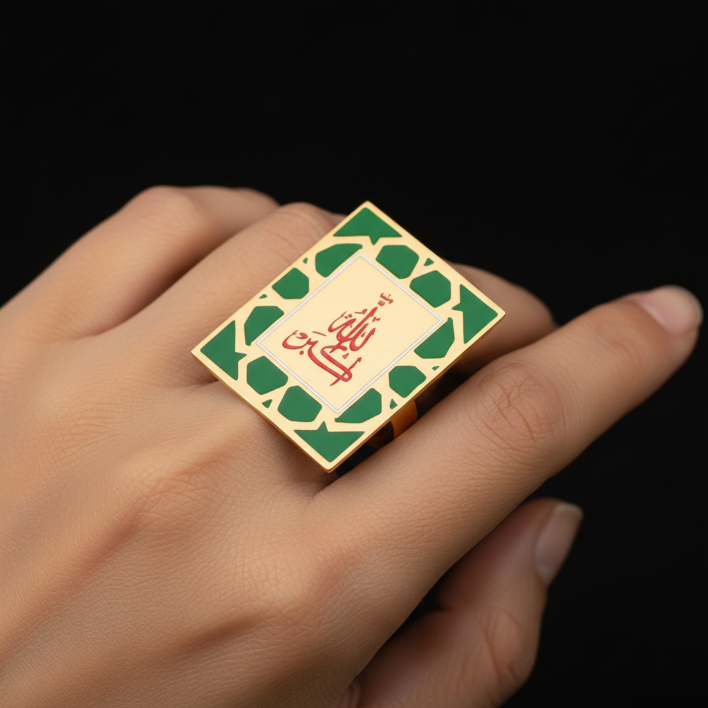 Handmade green Allah Akbar ring for women