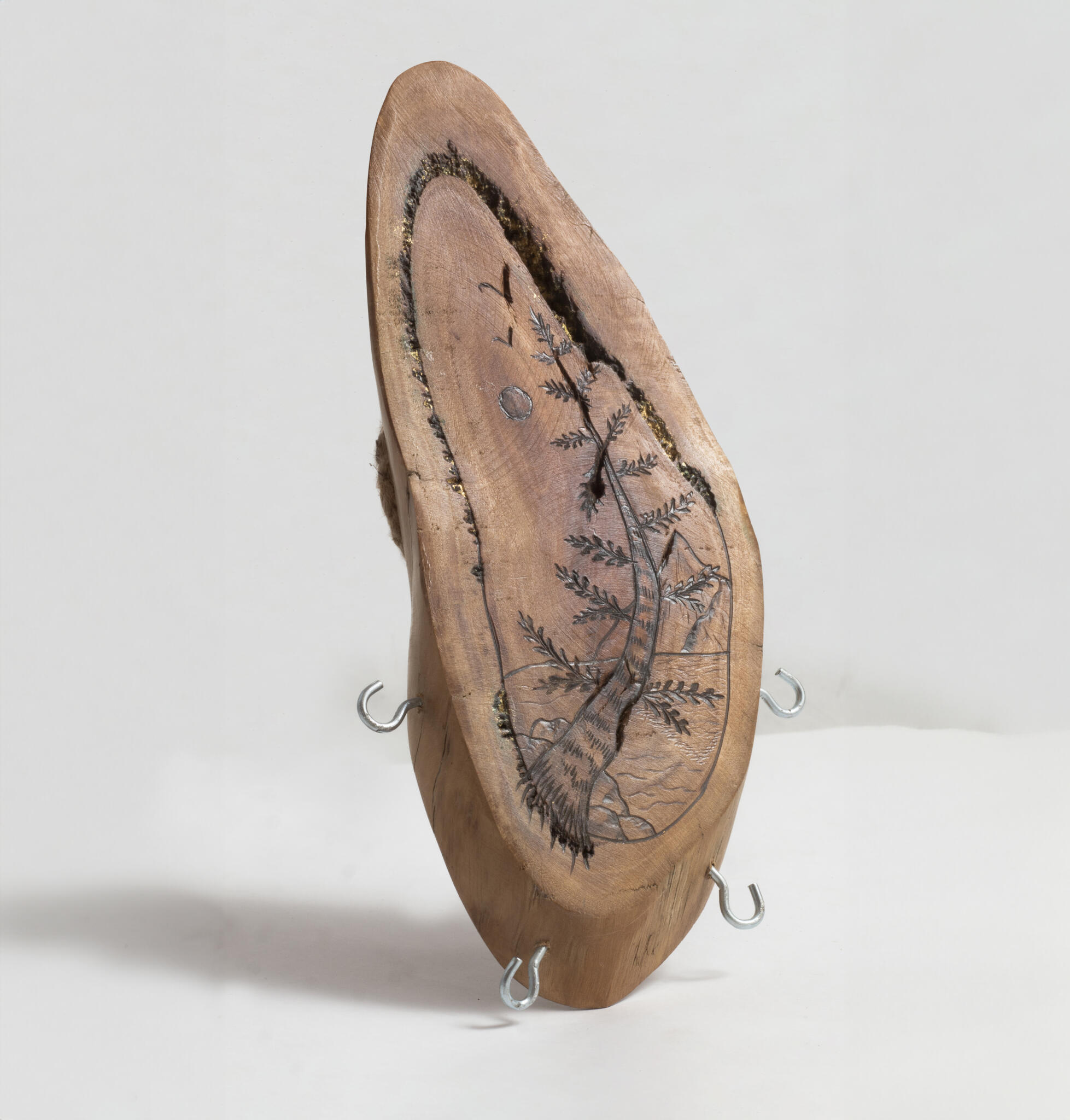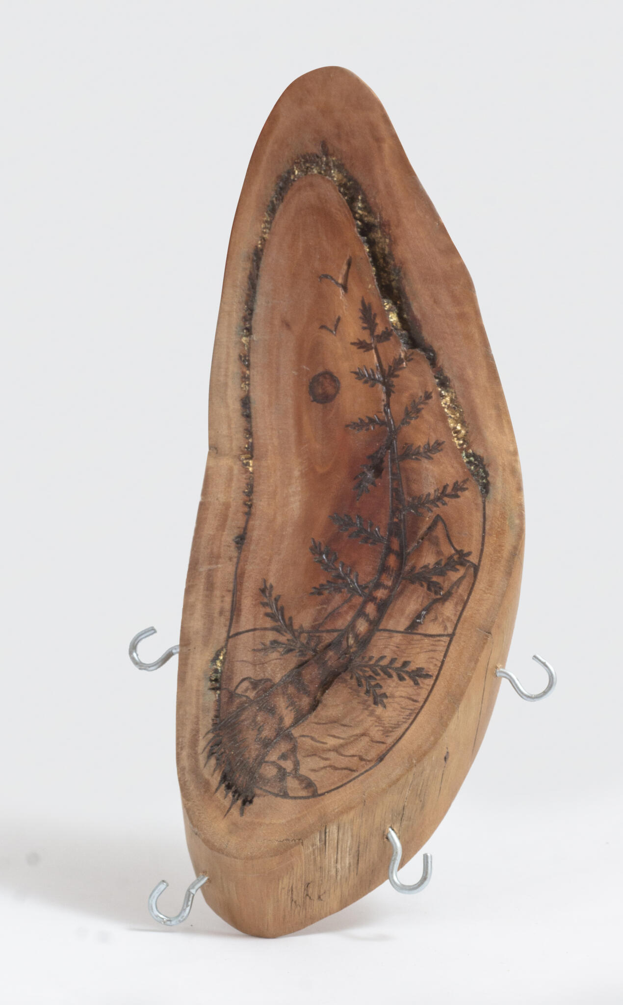 حامل مفاتيح من مقطع مميز من الخشب الطبيعي مرسوم عليها بالحرق