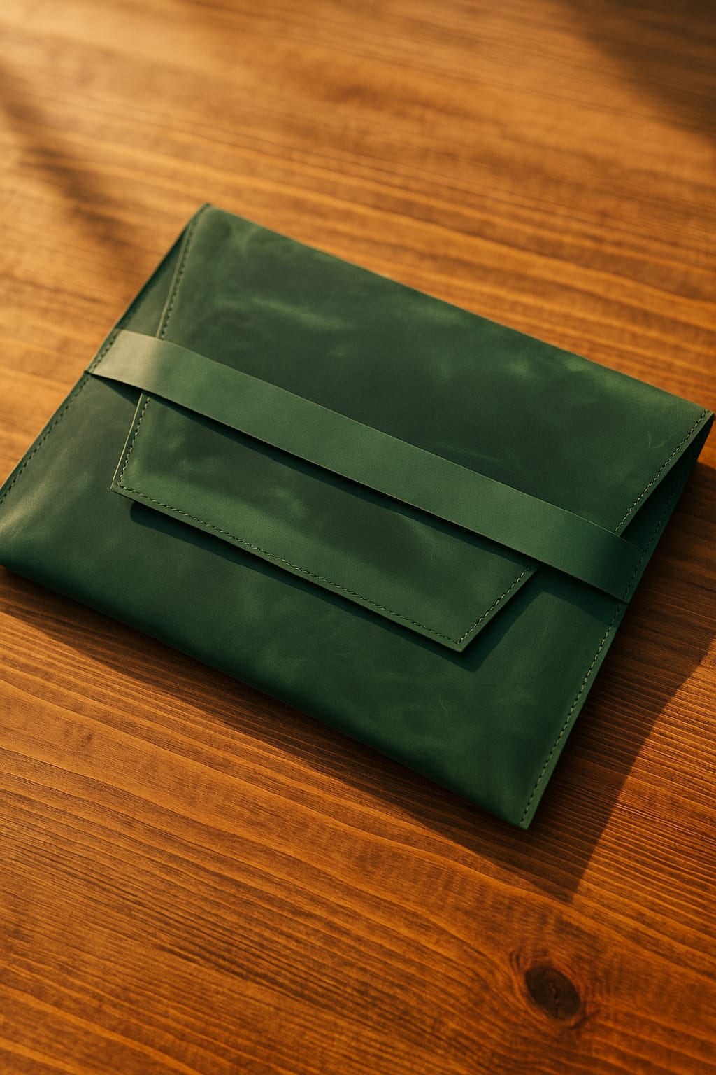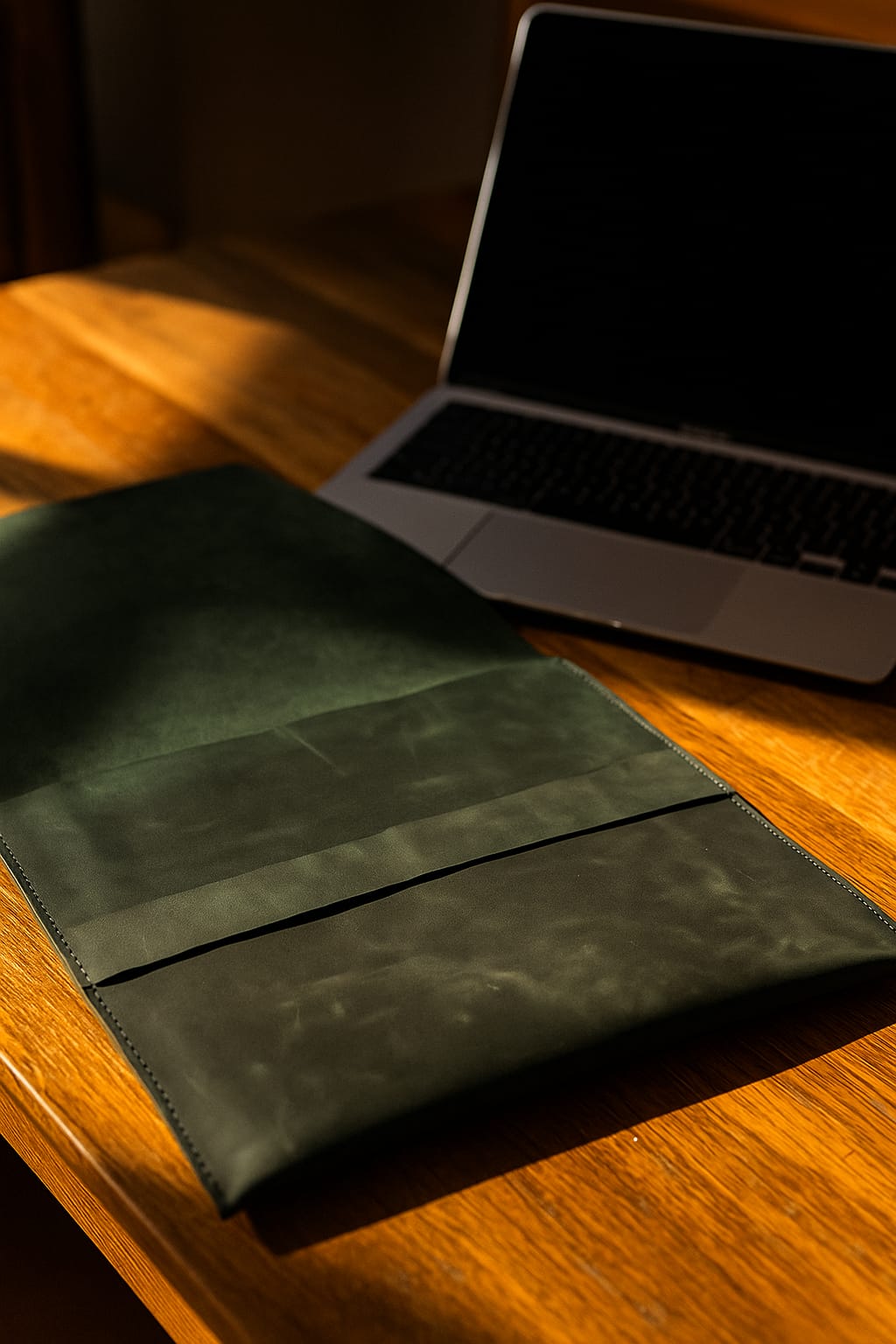 This slim Leather Laptop Sleeve is made of a soft natural pullup leather with one extra pocket that accommodates smaller necessities. The versatile closure and pullup leather offer both security and enviable style.