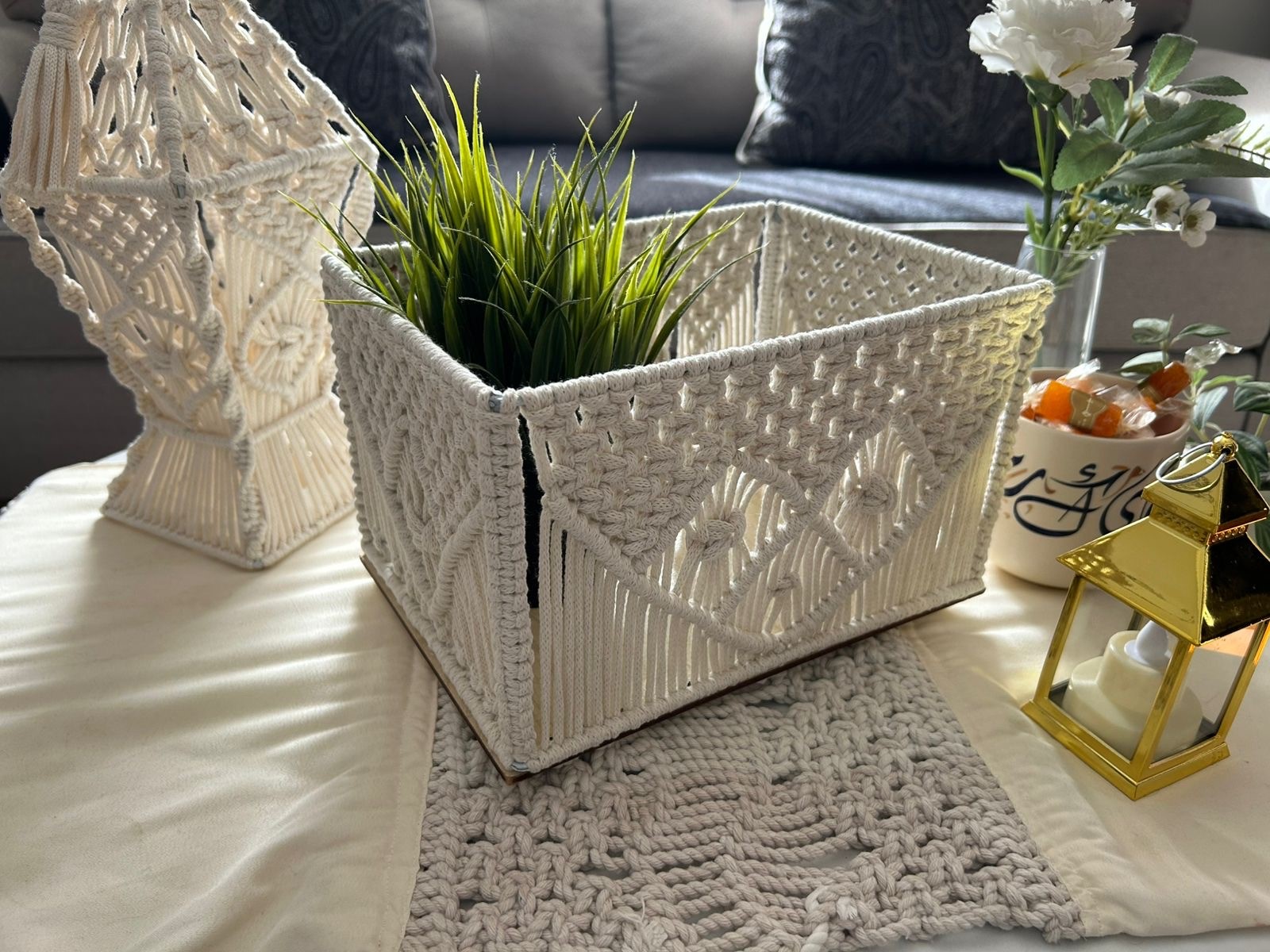 Handmade Macrame Basket 25 cm X 18 cm X 15 cm