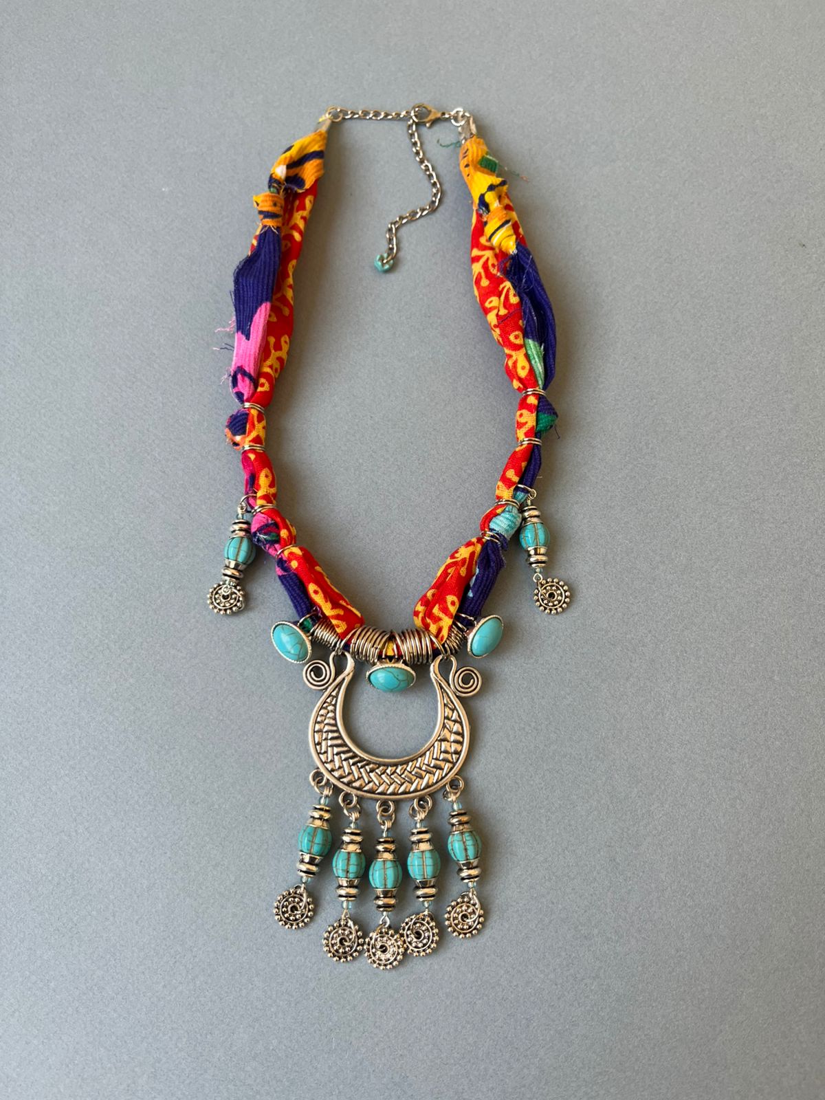 عقد مصنوع يدويا من القماش مع المعدن مع خرز فيروز