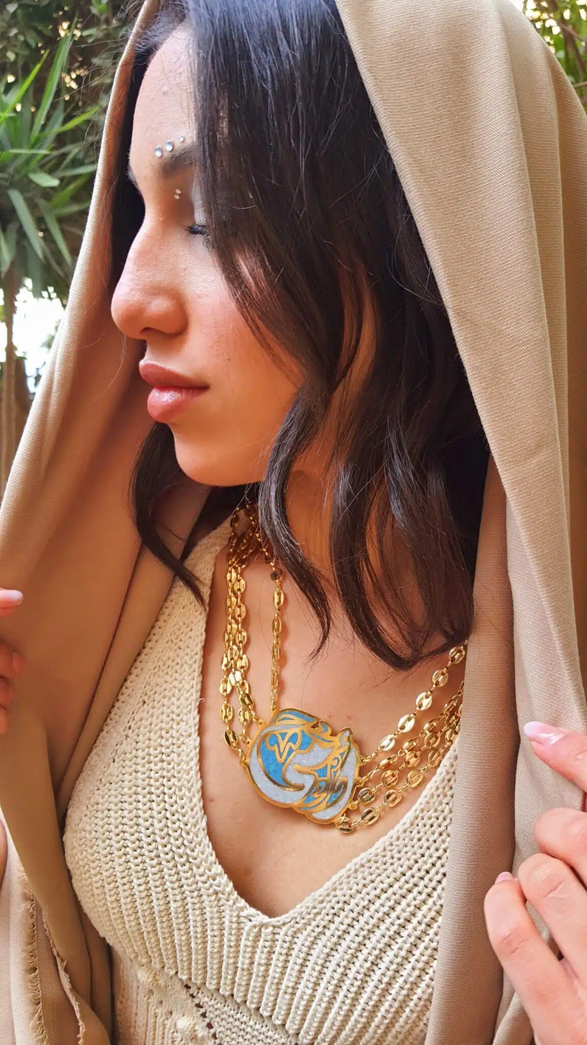 Handmade copper necklace plated with gold 18k and Melting agate stone 50 cm made with love