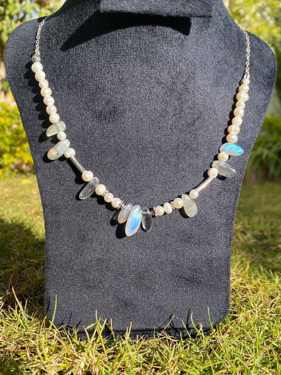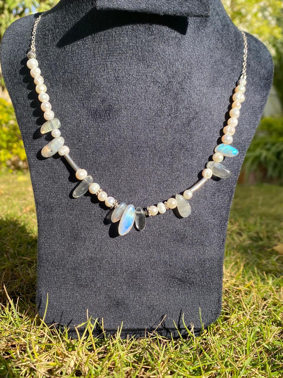 Handmade Original 925 Silver Pearl & Labradorite Necklace