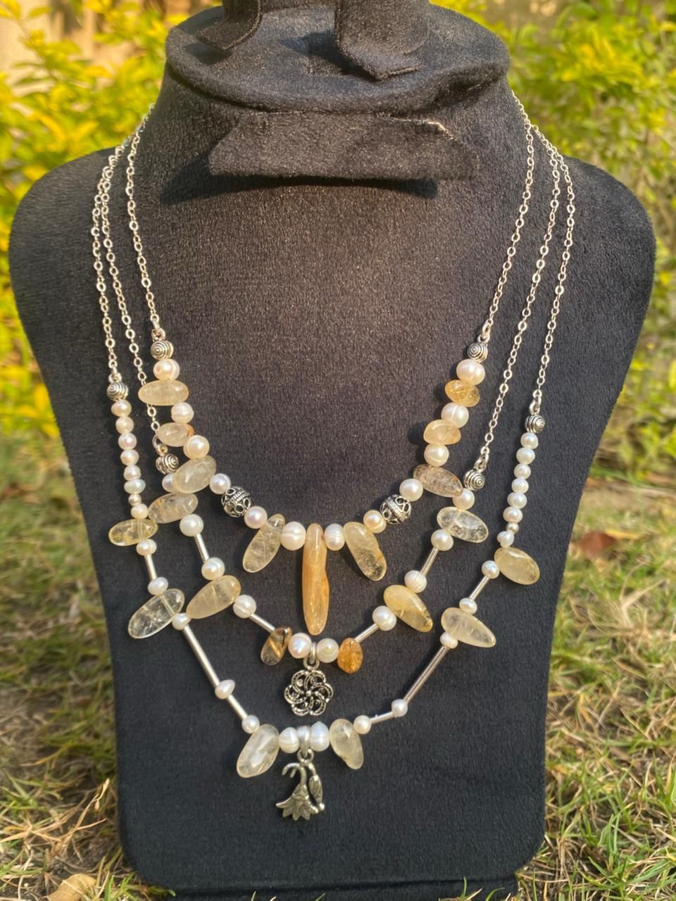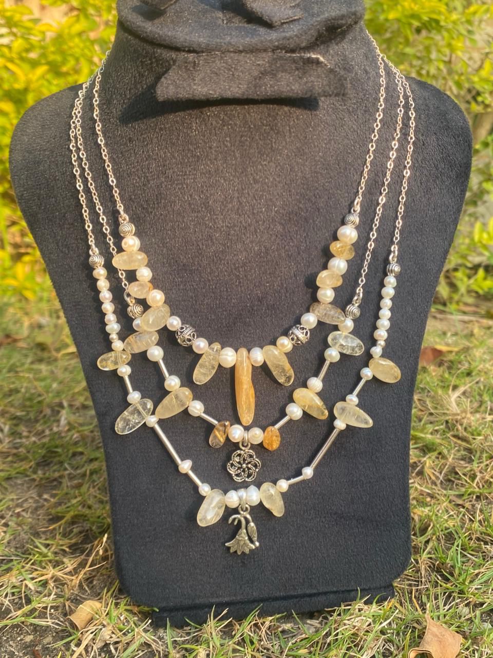 Handmade 925 silver necklace featuring natural pearl and scapolite stones. Simple, balanced, and easy to wear.
