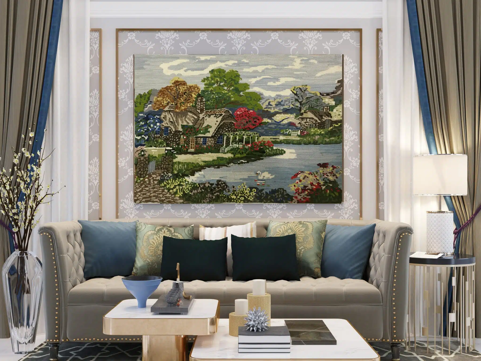 Capture the beauty of countryside life with this handmade tapestry featuring a picturesque cottage nestled beside a serene river. Lush trees, vibrant flowers, and a swan gracefully gliding through the water bring this peaceful scene to life. Perfect as a statement piece for your living room, bedroom, or office, this tapestry reflects fine craftsmanship and timeless charm.
