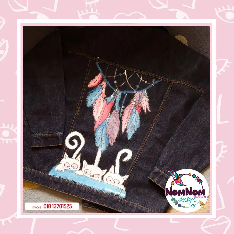 Handpainted Cats’ Dreamcatcher theme Oversized Jeans Jacket