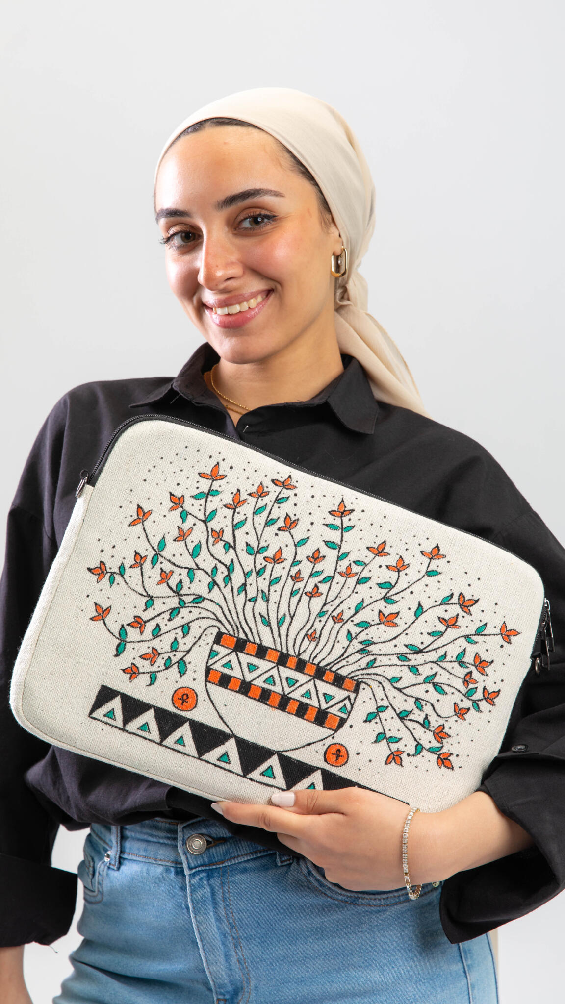 Handpainted Laptop Sleeve “Ankh Blooming Roots”
